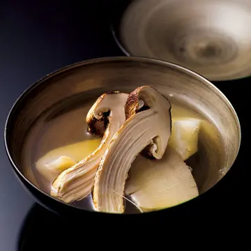 テールスープ仕立ての蕪と焼き松茸、ふかひれの煮物椀