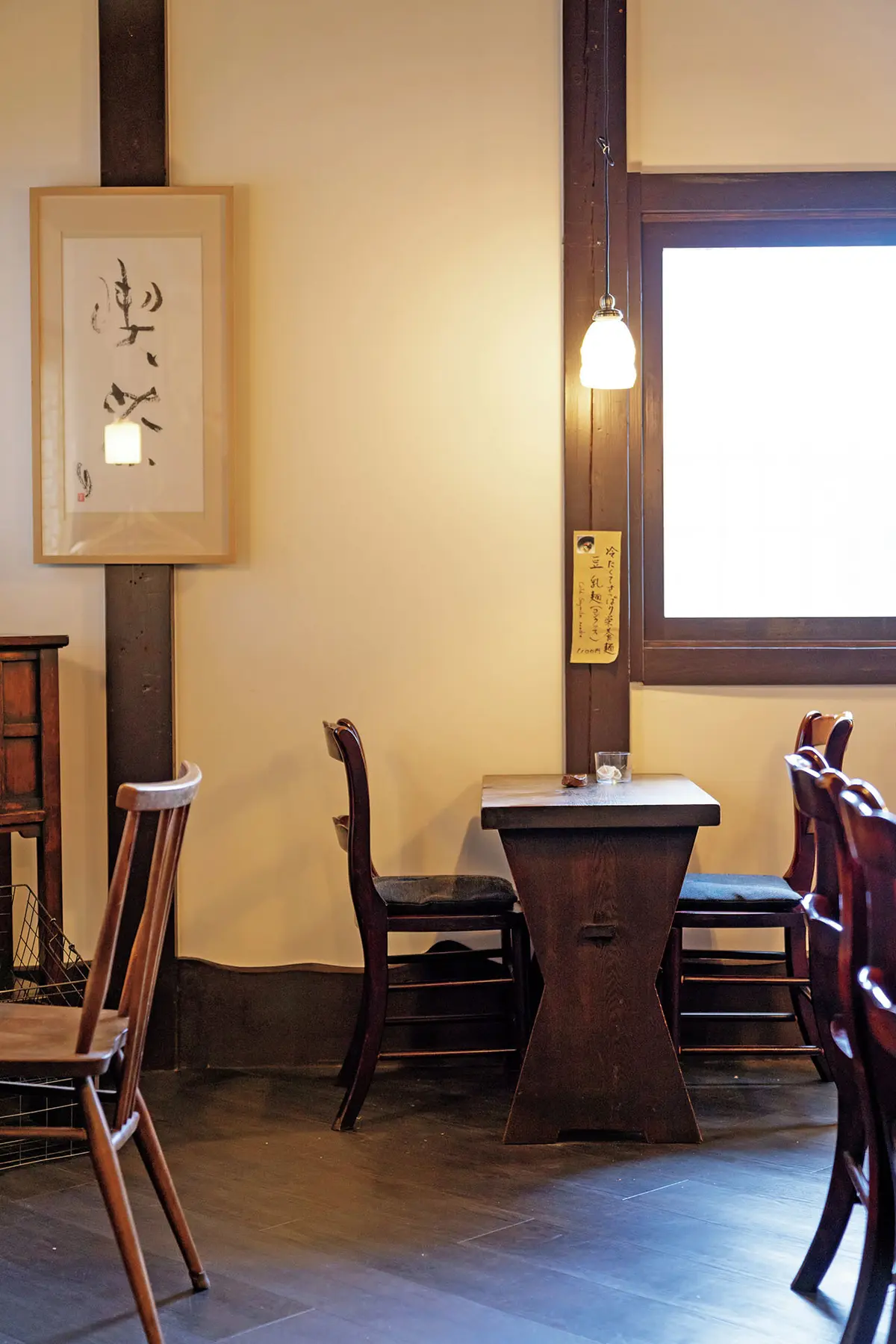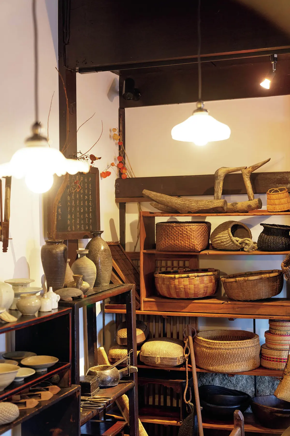 出町柳の韓国カフェ『李青』の2号店として昨年オープン。「20年前、食を通して韓国の文化を伝えられればと思い、店を開いたのですが、今回の店は韓国だけでなく、和や洋のものを織り交ぜたり、もっと自由で、私の家の感じに近いわね」と、店主の鄭玲姫さん。メニューもおなじみの韓方茶がそろうほか、ラム酒漬けしたクコの実やナツメを使った薬膳ケーキや、韓国の僧侶が飲む禅食をアレンジしたシェイクなど、伝統的な韓国食材を取り入れたオリジナルがいろいろ。「韓国に行っても出会えない、唯一無二の空気感。鄭さんのセンスがよく、雑貨コーナーもツボ。韓国の白磁かと思ったら日本の作家さんのものだったり、1000円しない古道具や数十万円の白磁の骨董も仲よく並んでいて、おもしろい」(編集K野)