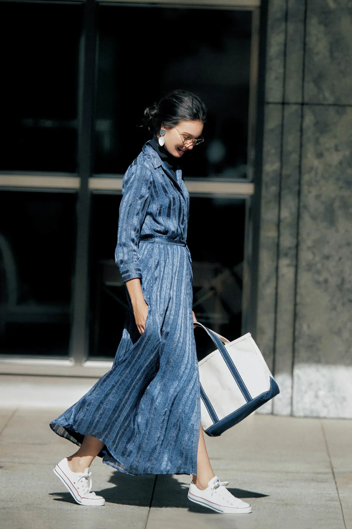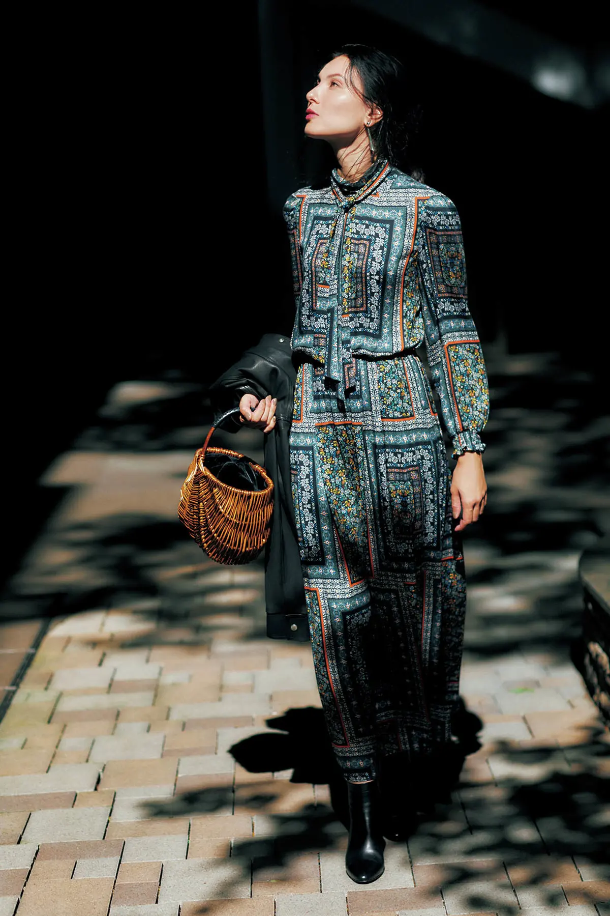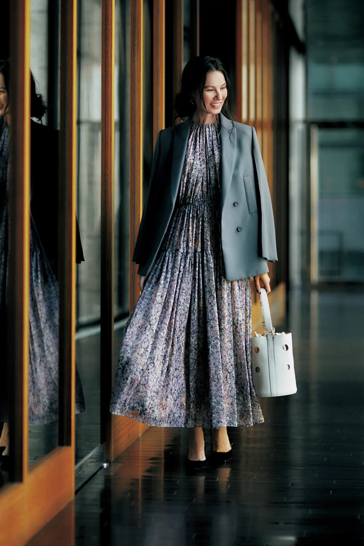 柄ワンピースは、一枚で華がある装いができる即効アイテムの代表格。その"華"は特別な日ではなく、日常にこそ活躍させたい。例えば、ランチにさりげなく。今どきのカジュアルに"華"を添えるのが、柄ワンピースの正しい装い方。