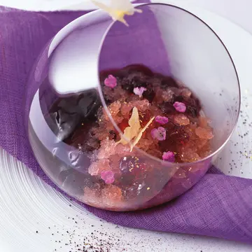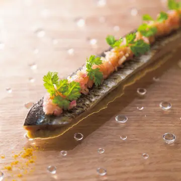 6月にオープンした漆喰(しっくい)の白壁と吉野檜が心地よいフレンチレストラン。東京やブルゴーニュ、バスクで腕を磨いた佐藤了シェフが奥さまの実家のある奈良で店を始める決心をしたのは、絶対美味な食材があったから。「つくり手が近く、すべてが自然体で刺激的」とシェフ。前菜のさんまは百済農園の焼き茄子、鴨ロースは宇陀金ごぼうのピュレ、奈良産ほうじ茶アイスはカカオ風味ビスケットと合わせ、奈良の食材で至福の夜へと誘(いざな)ってくれる。