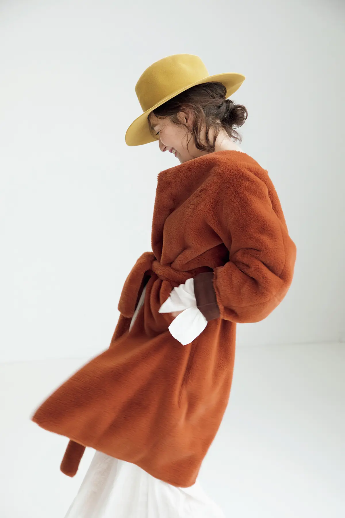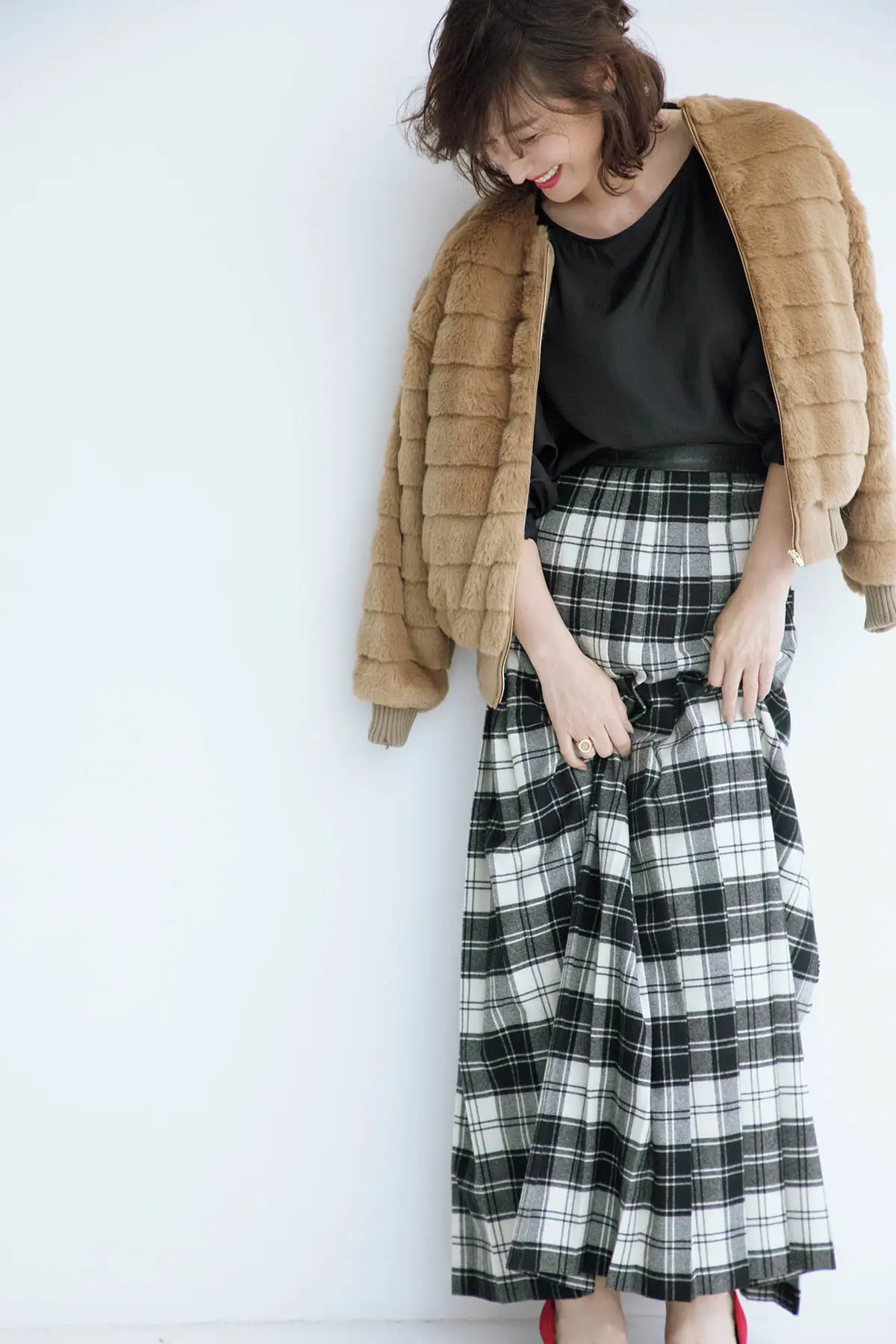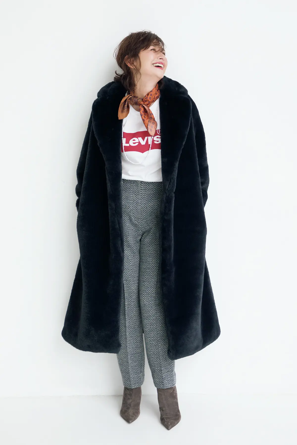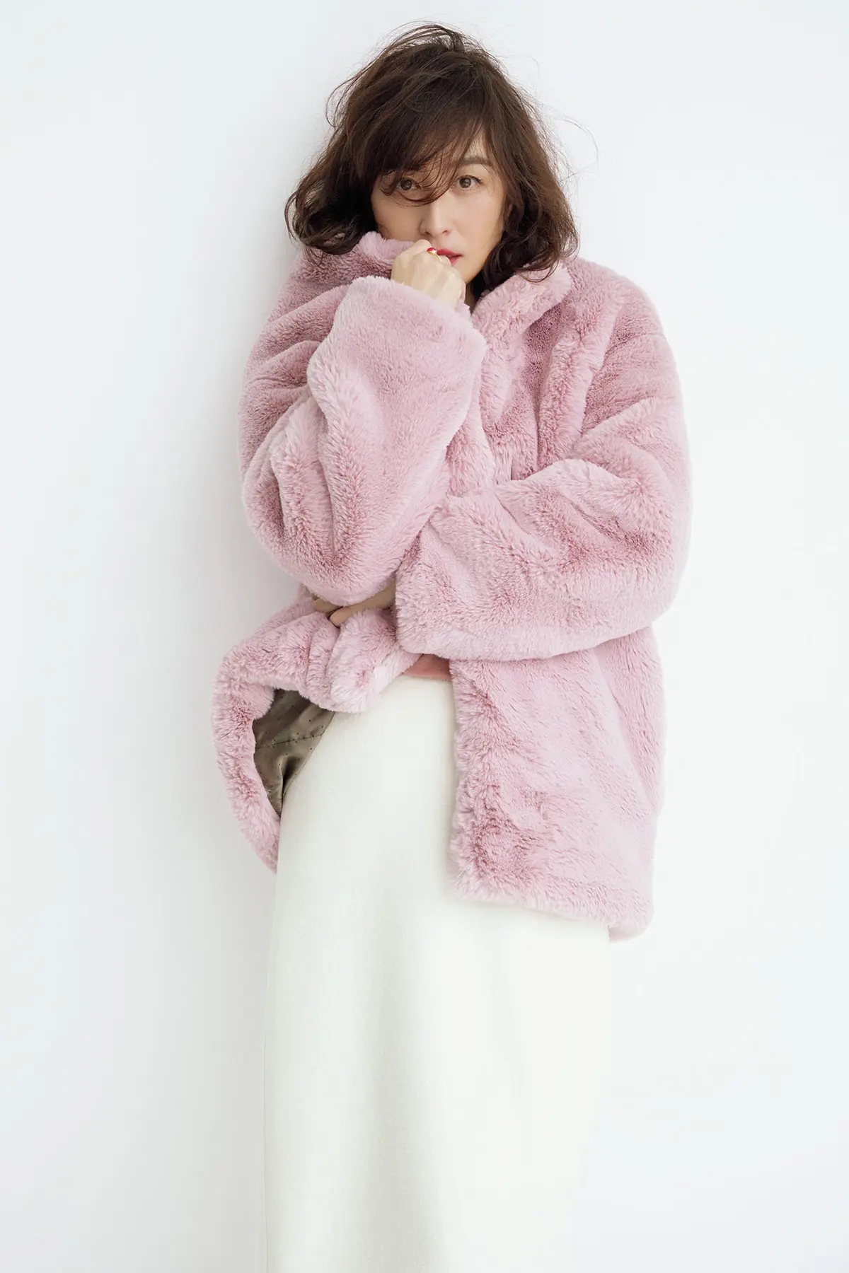 若いころは、「フェイクなもの」を持っていることに恥じらいがあったという亜希さん。年齢を重ねていろんなものがふっきれた今、エコファーだからこそ楽しめる冬のおしゃれに開眼したのだそう。ふわふわ&もこもことかわいらしく進化を続ける、暖かな大人のエコファーに、この冬すっかり夢中!