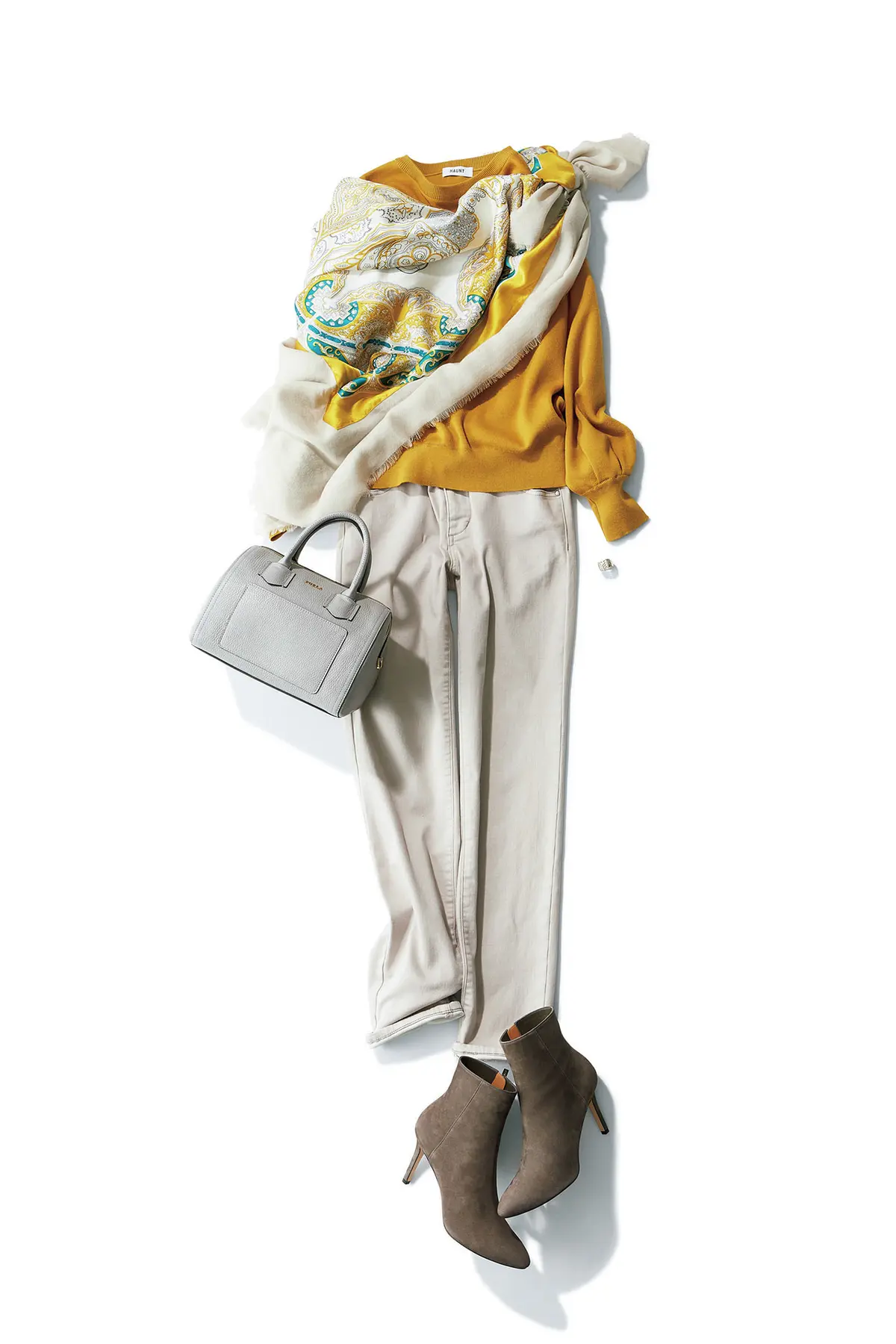"+濃密色"という新しいセオリーで大人を素敵に見せるグレージュの魅力がますます拡大! ポイントは濃密色を少量ではなくダイナミックに使うこと。時代性と若々しさが宿る、鮮度MAXの配色をマスターしたい。