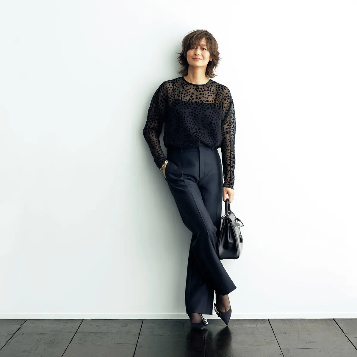 eclat1月号掲載 撮影/長山一樹(S-14) ヘア/左右田実樹 メイク/小森由貴 スタイリング協力/村山佳世子 モデル/富岡佳子 取材・文/磯部安伽