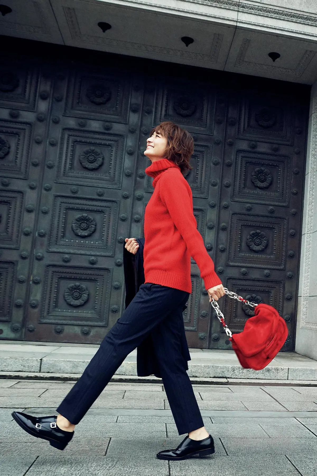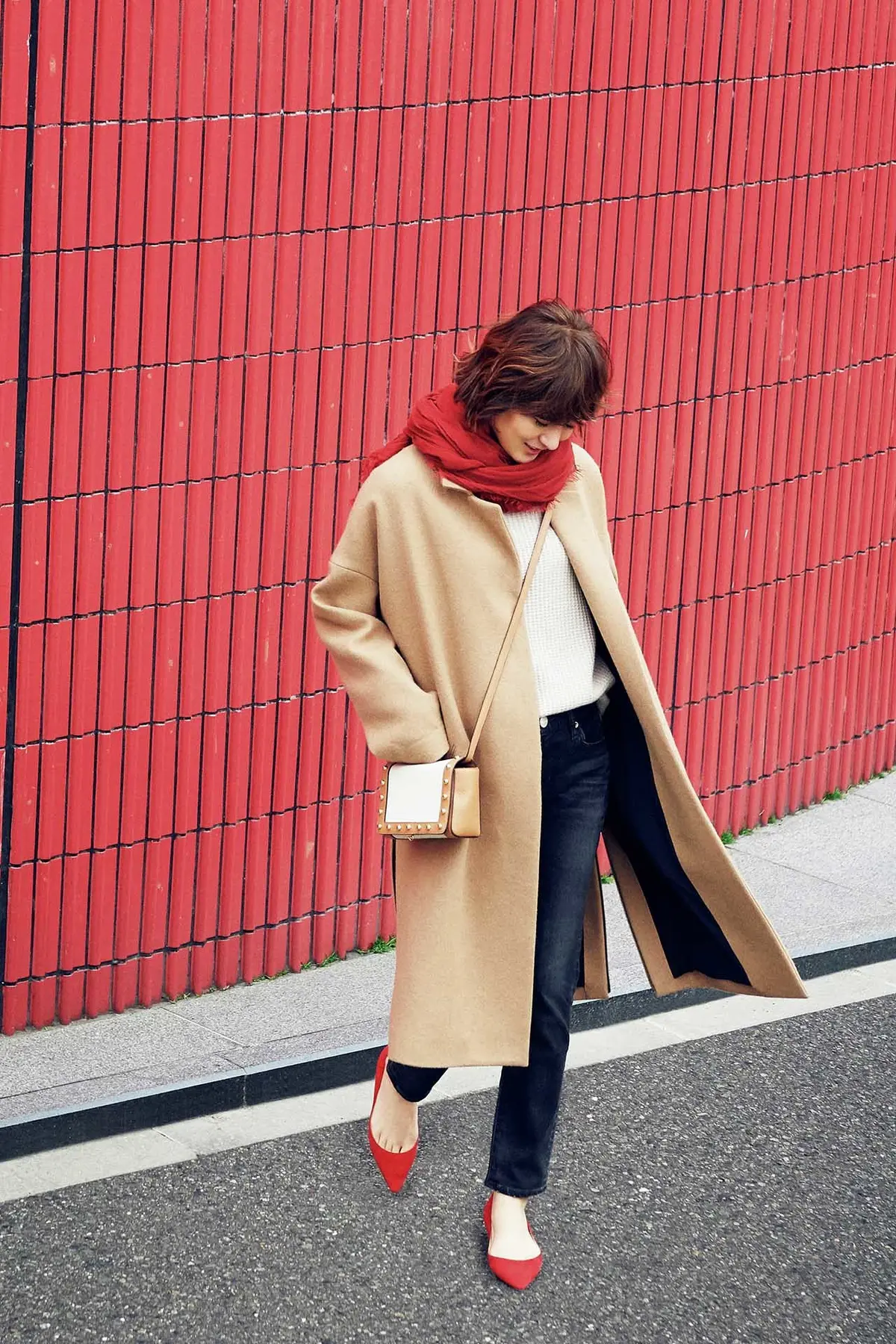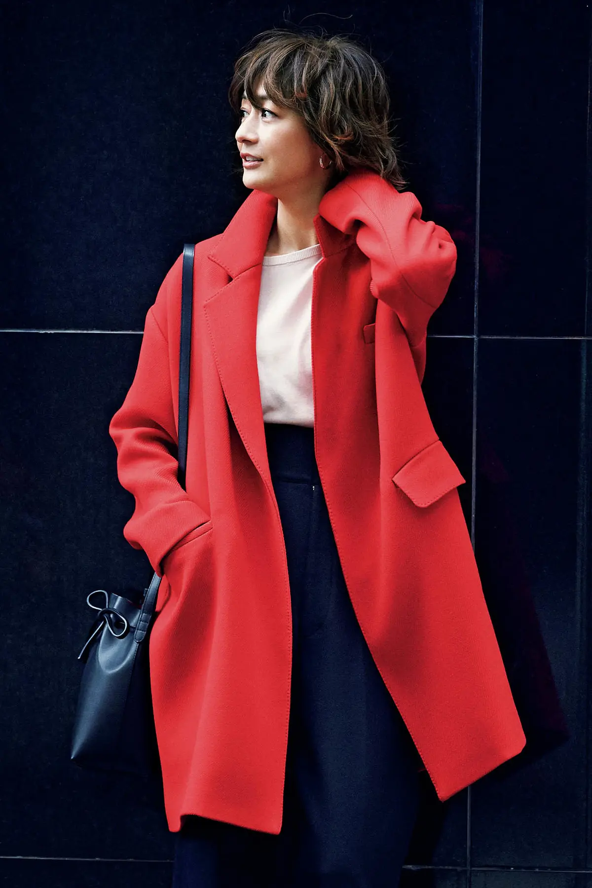 血色よく見え、顔映え抜群、気持ちまで元気にしてくれる赤は、一点投入するだけでもおしゃれ度が一気にアップ。そしてコーディネートにメリハリをつけてくれる便利な色。華やかゆえにゴージャスになりすぎてしまうこともあるから、引き算を意識した着こなしでシンプルにまとめたい。ダークカラーが多い冬こそ、遊び心たっぷりな赤の魅力を堪能しよう!