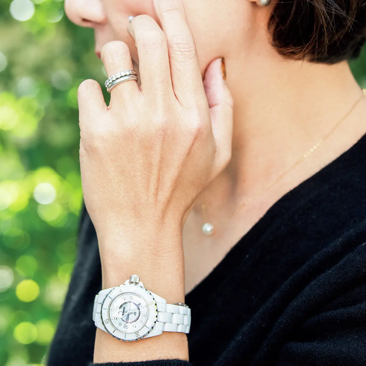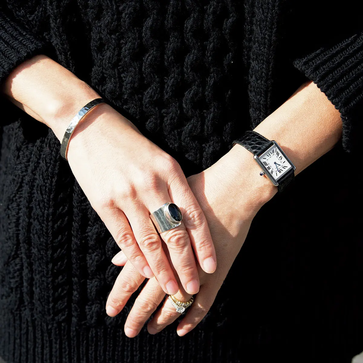 肌の露出が減る冬の着こなしにジュエリーや時計を小粋につけている人こそ、真のおしゃれ上級者。一点主義というより、ブランドにかかわらず好きなものを重ねづけする、自由な感覚の手元のおしゃれを拝見!
