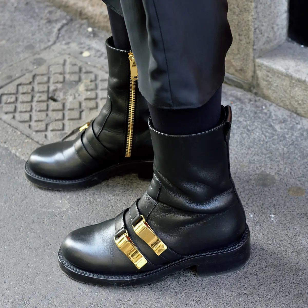 「これがあれば素敵」とわかる、トレンド傾向や旬のアイテムを編集部がキャッチ! この冬トレンドのワーク風ショートブーツ。足もとに新鮮なバランスを生む、バックル使いやボリューム感に注目!