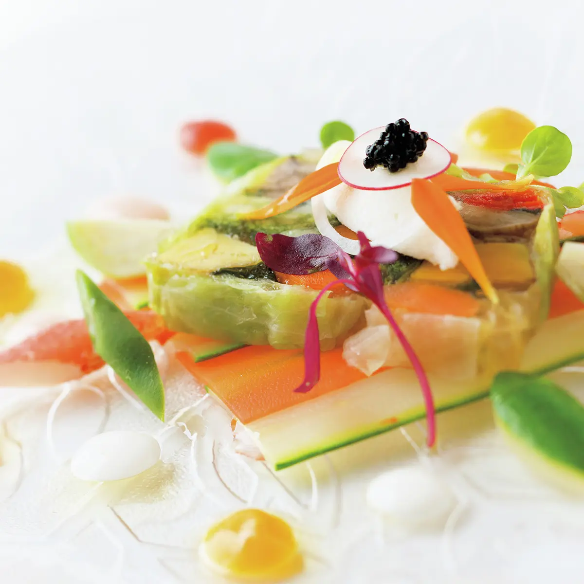 良質な越後の水と空気が育んだ地野菜や肉を、一流の技術でスペシャリテに仕上げる。希少な越後の地酒や新潟ワインをひと皿ひと皿に合わせて最高の状態でサービスする……、目ざすのはここでしか味わえない「里山キュイジーヌ」。例えば、スターターの豚リエット入りグジェールには、酸味が特徴的な地元・阿部酒造の生酛造りに自ら炭酸を注入したスパークリングを! 同世代で息の合う栗山シェフと山岸オーナーの日本酒ペアリングテクニックにゲストがとりこになるのも当然なのだ。美食経験値の高いエクラ世代に、とっておきの隠れ家オーベルジュとなるはず。