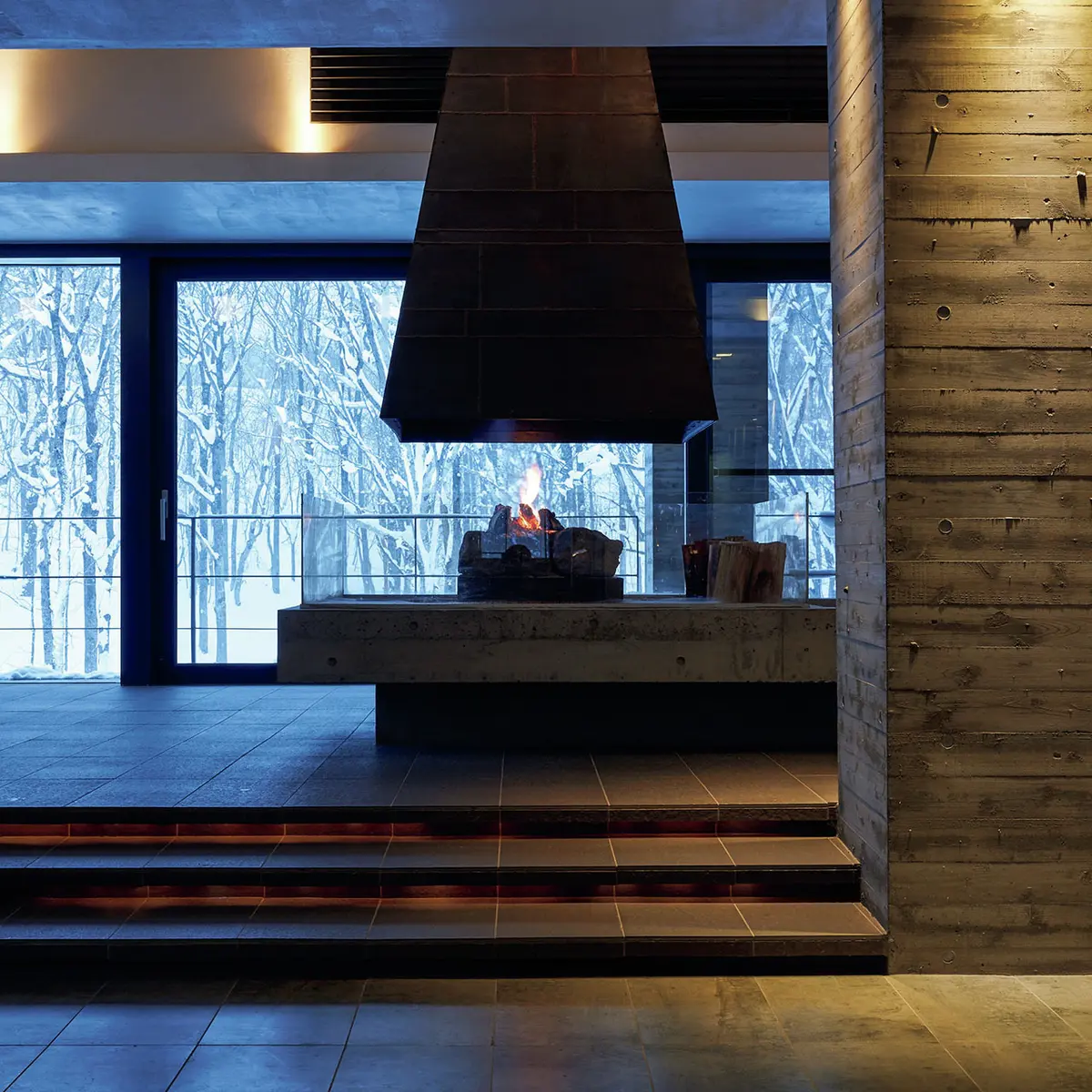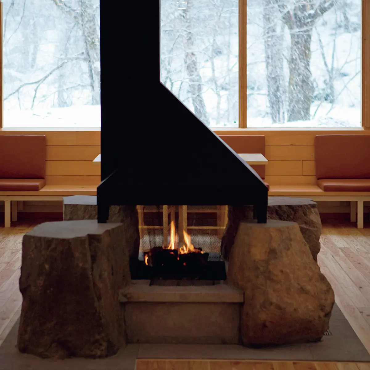 新千歳空港から車で2時間。山道の途中、見落としそうな看板を頼りに、森の中へ向かう。エントランスを抜ければ、ロビーの暖炉の火が迎えてくれる。