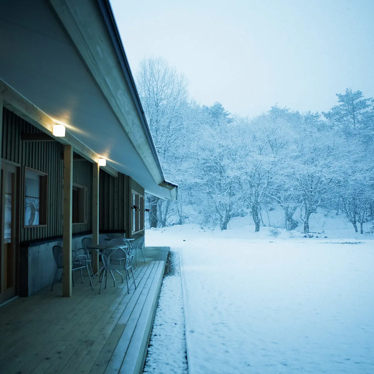 建物の中にいても不思議と外とつながっているような窓で、暖かな部屋にいながら雪原を心ゆくまで眺められる……。その設計の秘密は、住宅建築の名手として知られる東京藝術大学名誉教授の益子義弘さんを筆頭に、3人の建築家が手がけたリノベーションであること。大人の心地よい隠れ家というにふさわしく、ひと部屋ずつ内装や家具の趣が違うのもまた楽しみ。地元の食材を使ったカジュアルフレンチのあと、午後9時にはお夜食のおにぎりが各部屋のポストに届けられるという茶目っ気たっぷりのサービスも(このお米がまたすばらしく美味!)。広い敷地内の遊歩道は、歩きながらゆったり語り合うのにこのうえないシチュエーションだ。
