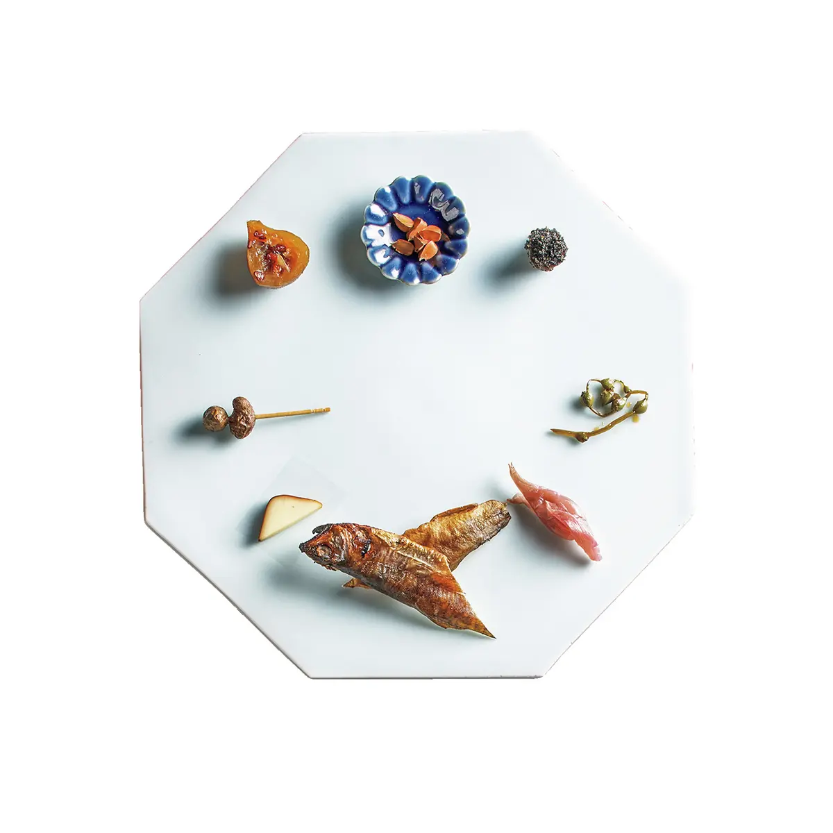 景色を愛でつつ、温泉に入れば、北海道の幸をふんだんに使った懐石料理の夕食が待っている。和食の枠に収まらないモダンなテイストは、見慣れた懐石料理とは一線を画す。冬なら松川ガレイ、北寄貝、オホーツクのボタン海老、蝦夷アワビ。例えば、アワビは活きたまま揚げ、木の芽、ディル、花椒をしのばせる。メインに蝦夷鹿、締めには道産「ななつぼし」のごはん。料理を引き立てるのは作家ものの器だ。料理長が自ら出向いて、オリジナルを作ってもらうことも。