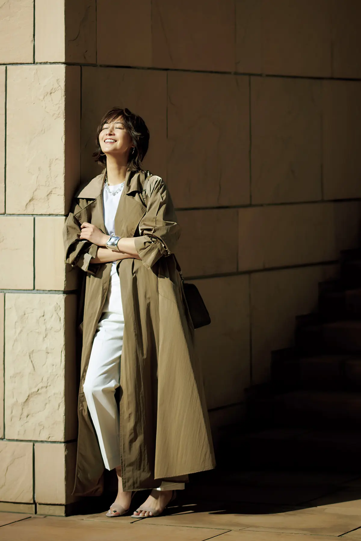 eclat4月号掲載 撮影/渡辺謙太郎(MOUSTACHE) ヘア/左右田実樹 メイク/小森由貴 スタイリスト/福田亜矢子 モデル/富岡佳子 取材・文/松井陽子