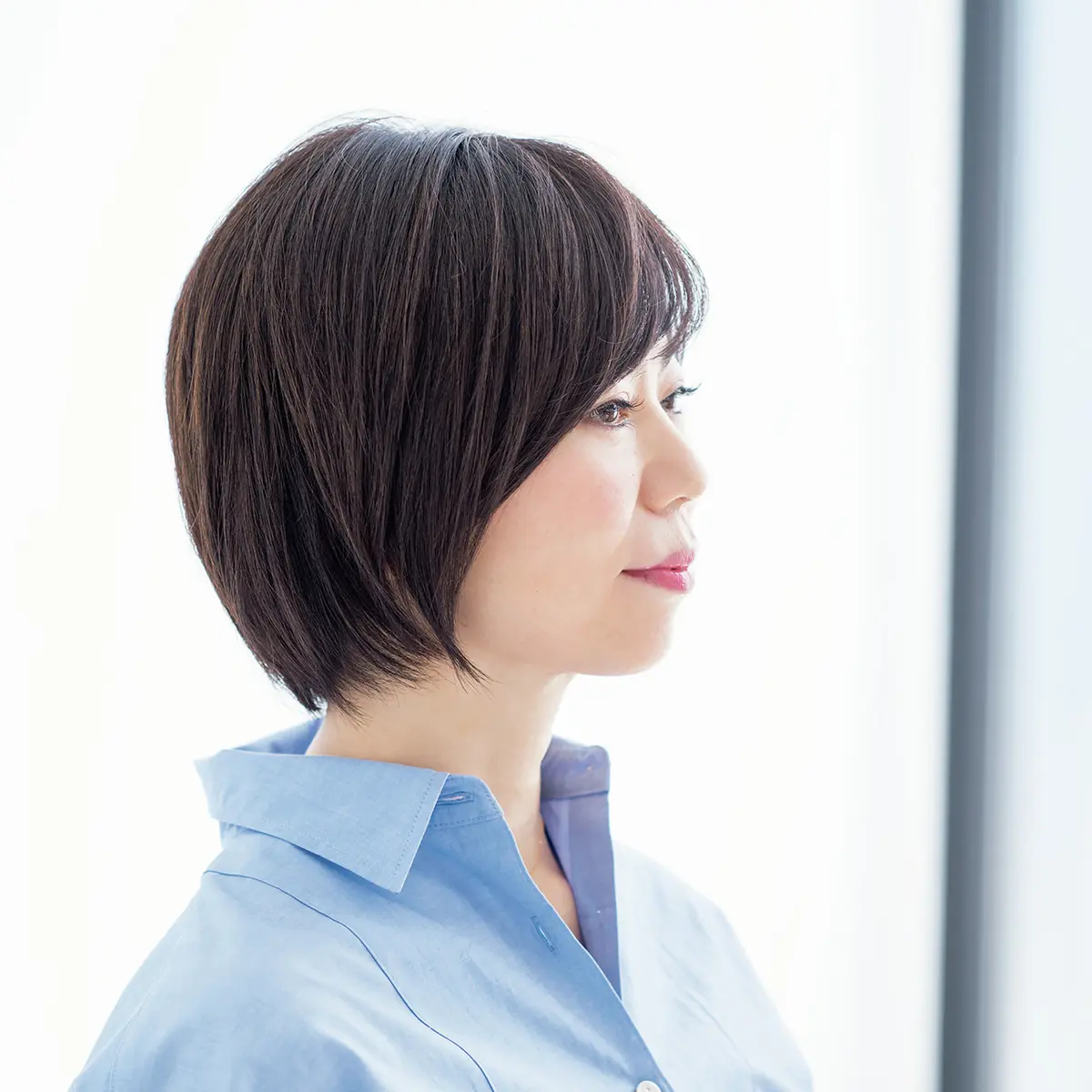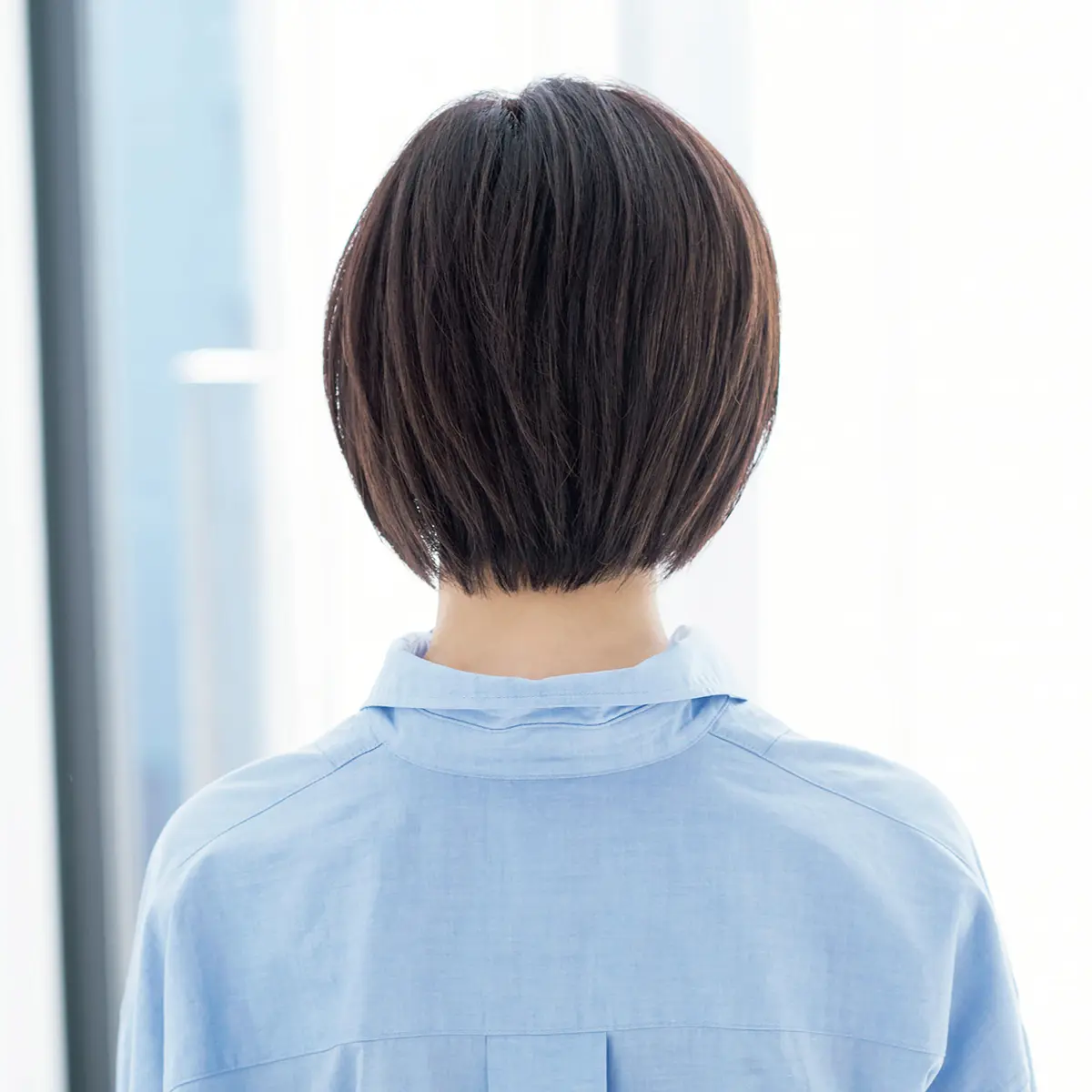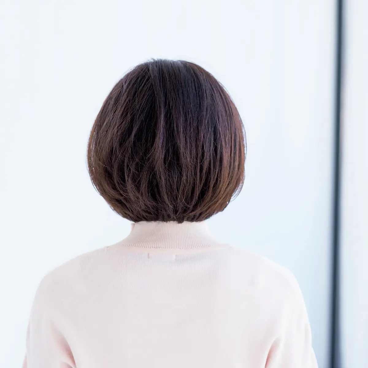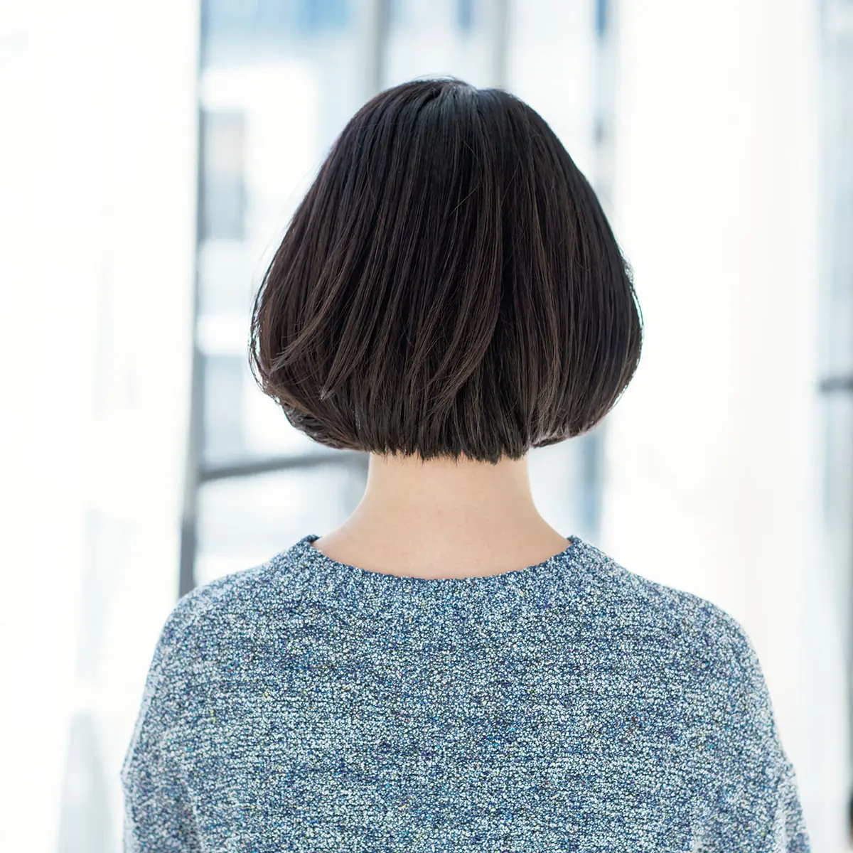 くせが強くなり、表面の髪がチリついたりパサついたり。アラフィーの髪の変化に対応できるのが丸みボブ。表面は重さを残して、内側の髪で毛量調整を。もたつく重さは取り去りつつ、スッキリとあかぬけたヘアスタイルにチェンジ。ブローで仕上げる艶ボブは知的な印象も与えられる。