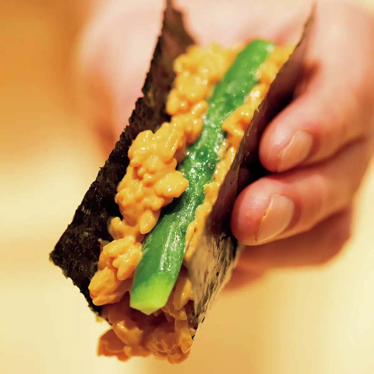 オリジナルの「プリン巻き」は、提供時のパフォーマンスも含めた“名物”。N山さんも「個室もあり、鮨ビギナーの友人たちとの女子会にもよさそう」と、次の訪問の機会をねらっているところ。