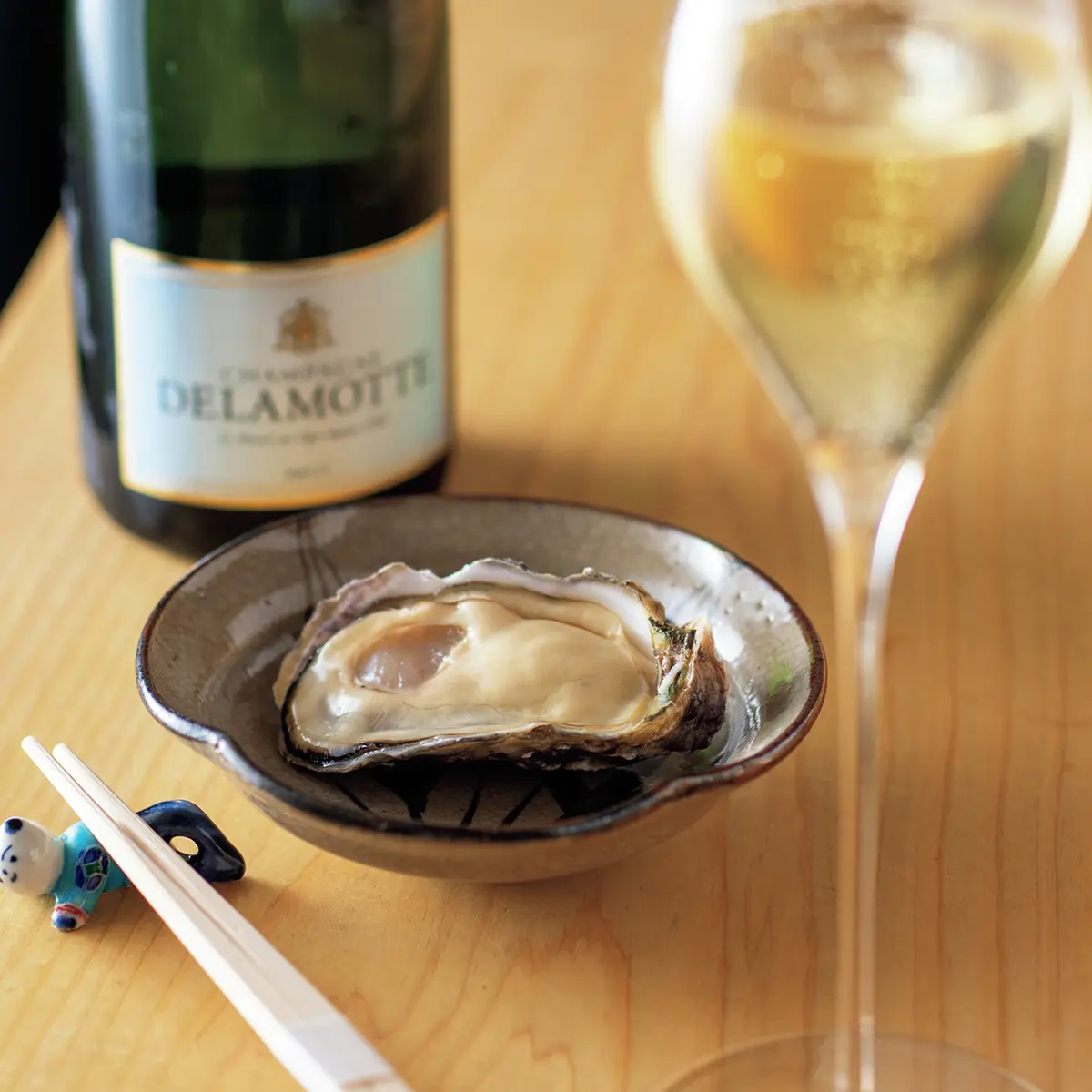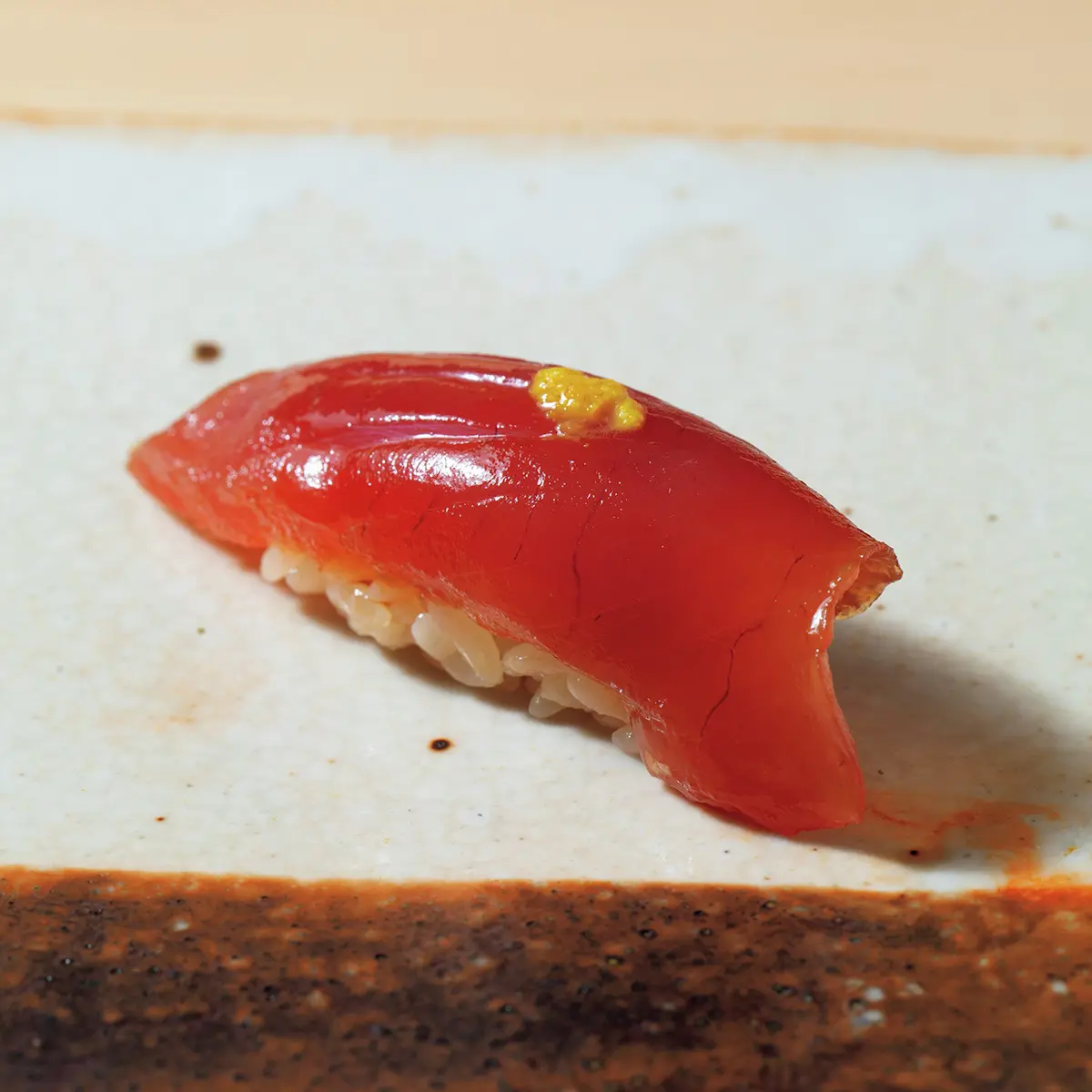 鮨だねで力を入れるのは、一も二もなくウニ、そしてマグロ。逸品つまみとにぎりを織り交ぜたコースのハイライトとしてそれぞれを2、3貫ずつ出し、味の違いを楽しませる。ワインはシャンパーニュ、ブルゴーニュを中心に自然派からグランヴァンまで、ツボを押さえたセレクト。