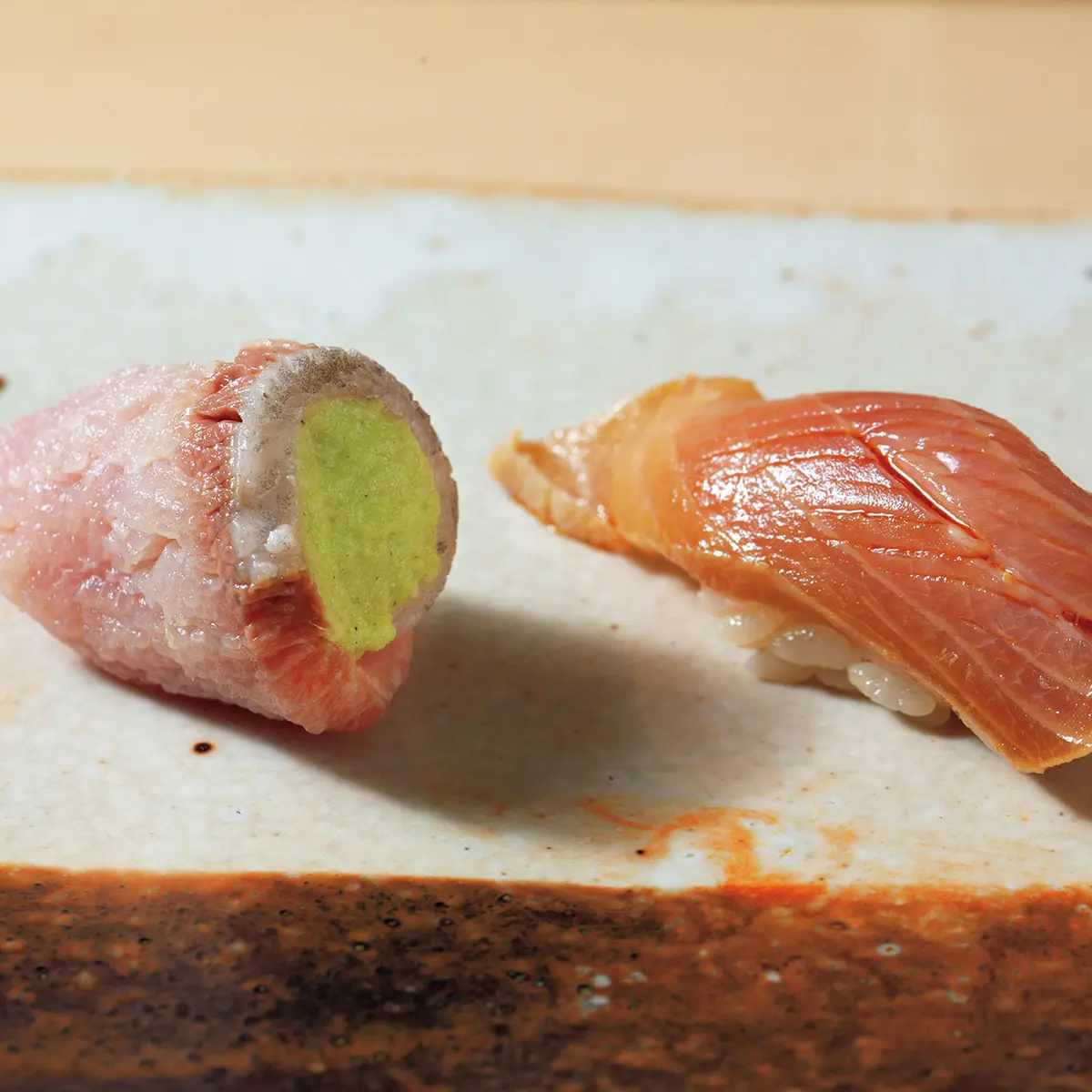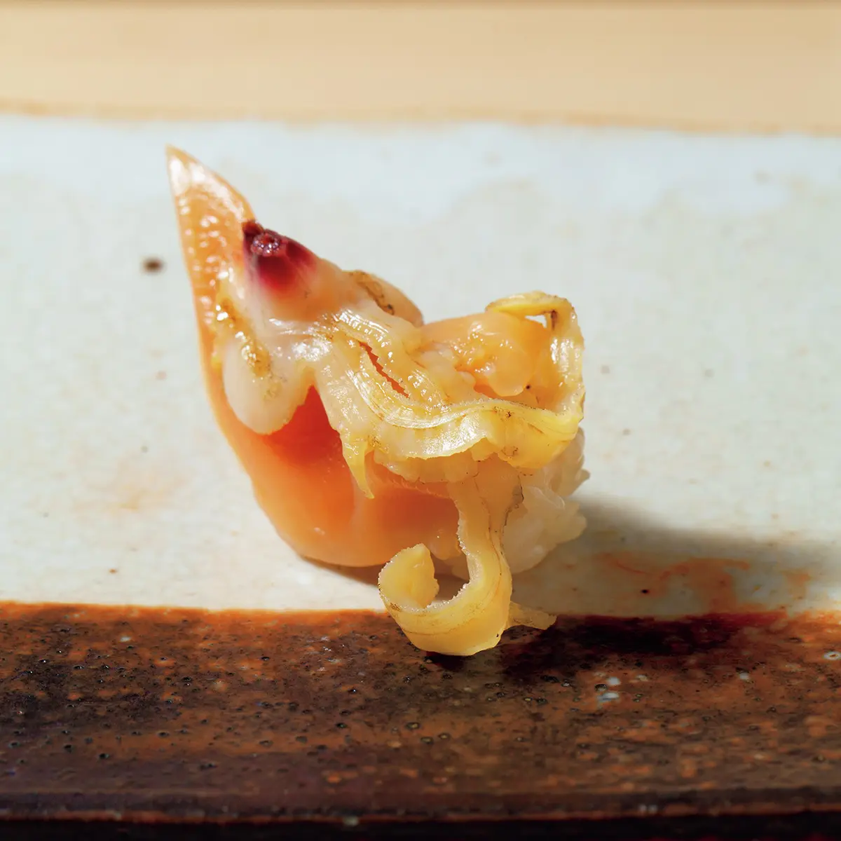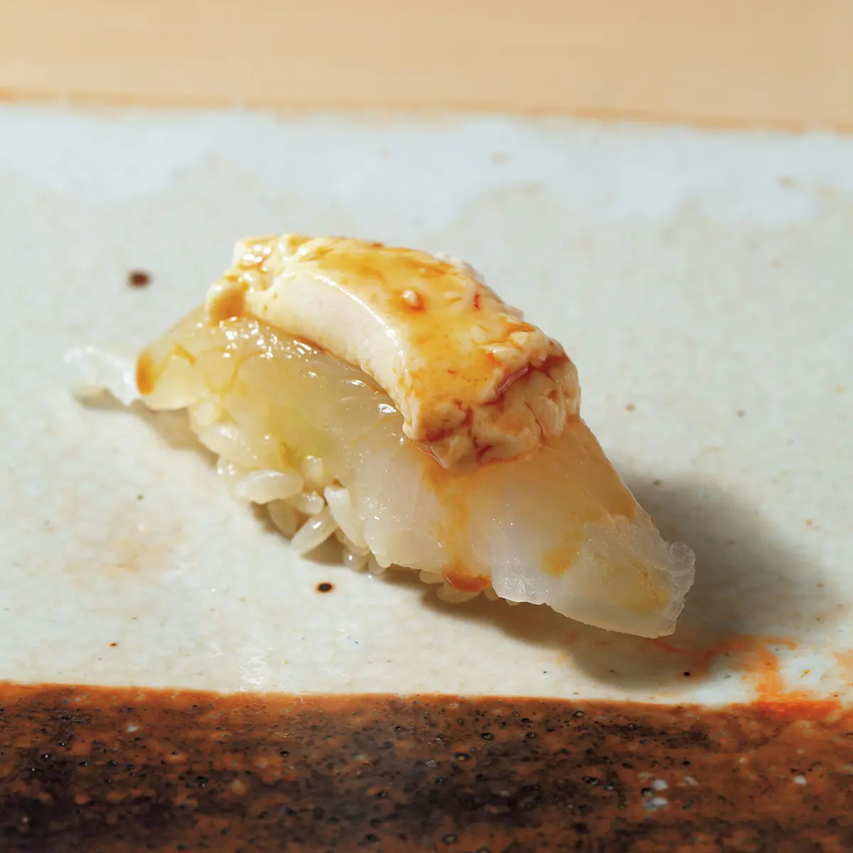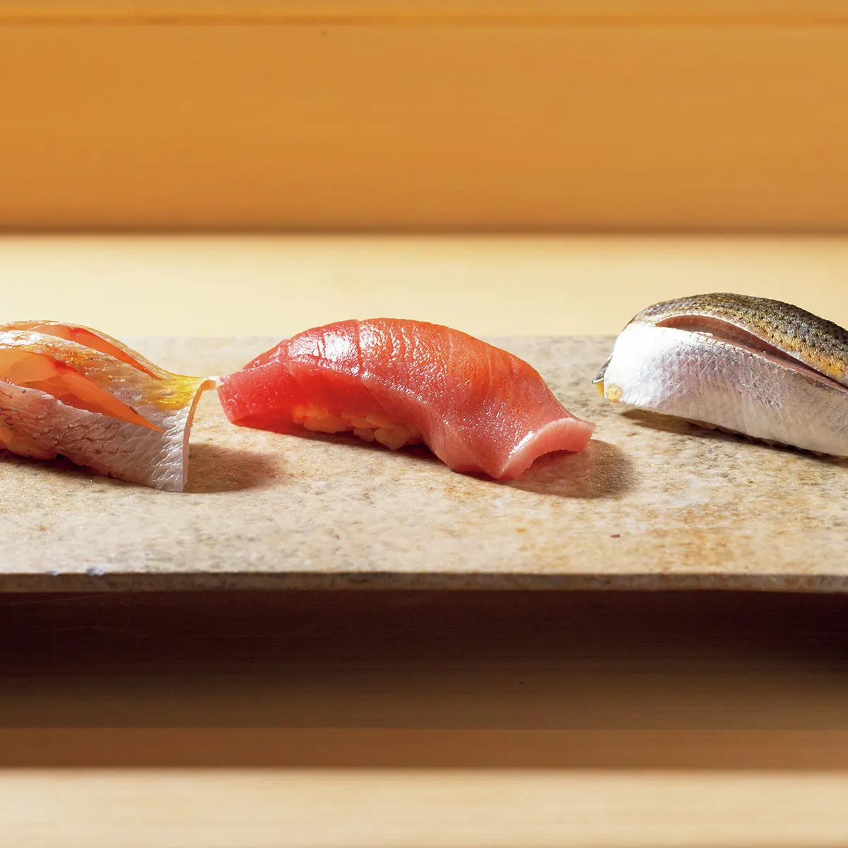 つまみとにぎりが交互に出るスタイルは、修業先『すし匠』を踏襲するが、驚くのは50を軽く超えるという品数。数もさることながら、ひと口の酒肴にいたるまでこまやかな仕事が施されていて、扱う魚種も幅広い。ふだんは鮨屋でも「食事と会話を楽しむ派」のN山さんだが、ここでは岡正勝さんの熱に引き込まれ、ついつい魚の話に没頭してしまうのだとか。「知識や経験値にかかわらず誰にでもわかりやすい説明で、カウンターに一体感が生まれるんです」とも。