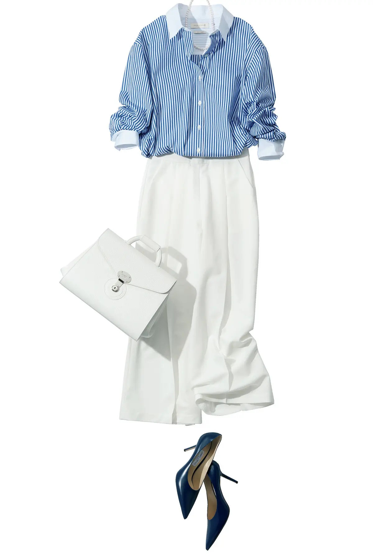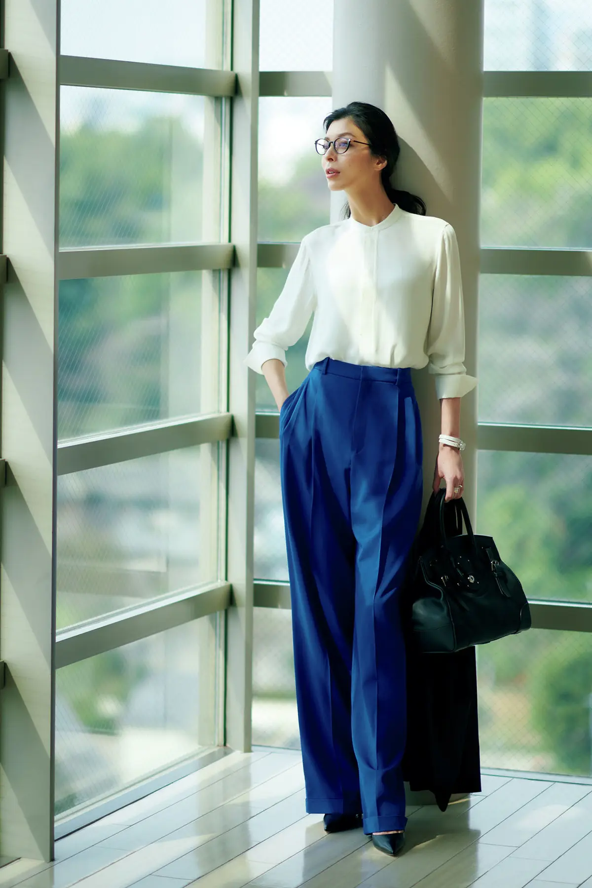 ビジネスの世界で標準色といわれるネイビーを筆頭に、クールで仕事ができる印象を与える色。さらにイメージアップをはかれるブルーのバリエーションをメインアイテムとして取り入れて。カラープロデューサーの今井志保子さんによる解説つきでご紹介。