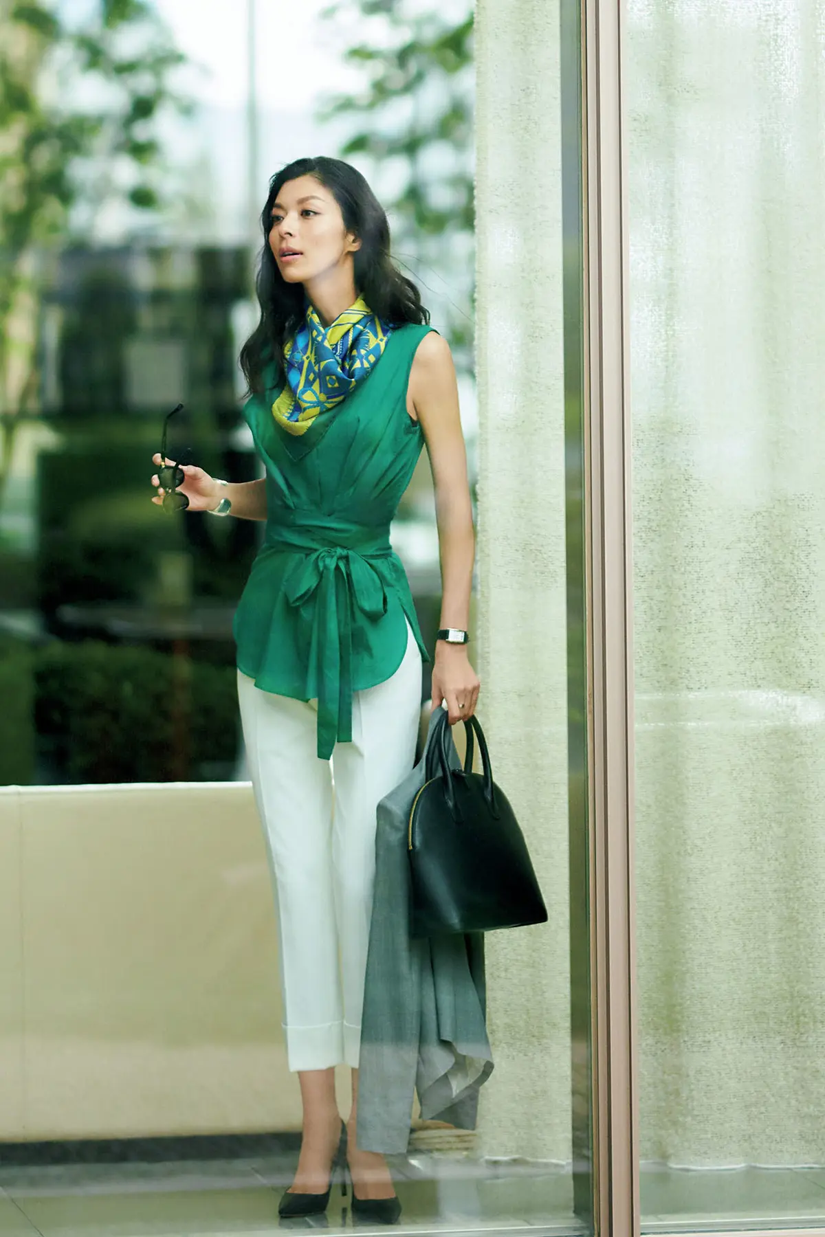 人の上に立つ立場のエグゼクティブ女性にこそ、強さだけでなく、穏やかで優しげな雰囲気が求められる。そんなときに身につけたいのが、好感を呼ぶ色・グリーン。洋服や小物など、さまざまなアイテムで取り入れたい。カラープロデューサーの今井志保子さんによる解説つきでご紹介。