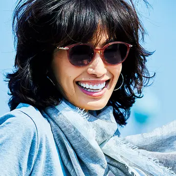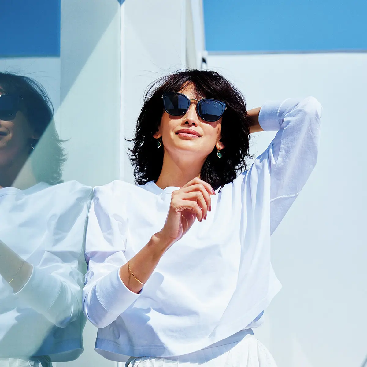 目じりが自然に上がったソフトなキャットアイ型や、名前のとおりキツネ目のような形のフォックス型は、顔全体をリフトアップして見せながら、エレガントな雰囲気もまとえる大人向きサングラス。