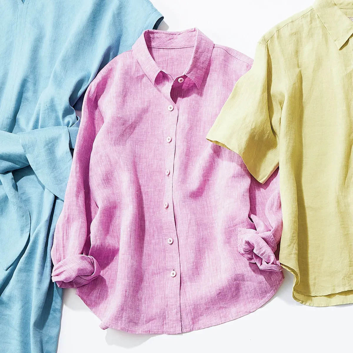 リネンアイテムがトレンドのこの夏は、きれい色も多彩なラインナップで登場。色のもつフレッシュさで、着こなし全体をアップデートしてみせられそう。ほっこりさせず、大人の装いに着地させるリネンアイテムをチェック。