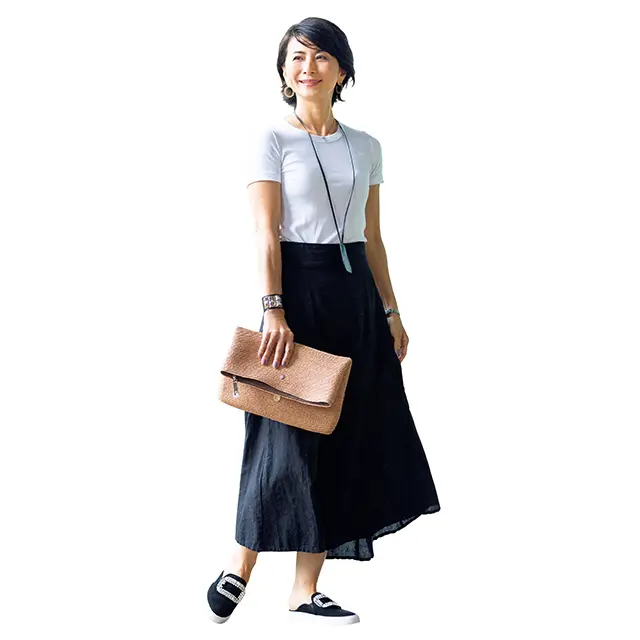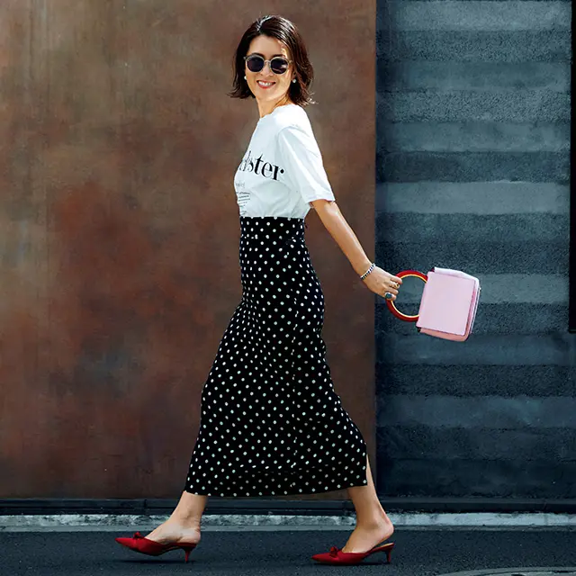 気軽に女性らしさを演出できる「スカート」。Tシャツと組み合わせても、カジュアル過ぎず大人っぽくキュートで上品な印象に仕上がります。夏のコーデに迷ったら「Tシャツ×スカート」に決まり!