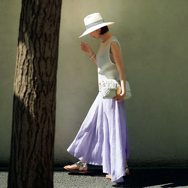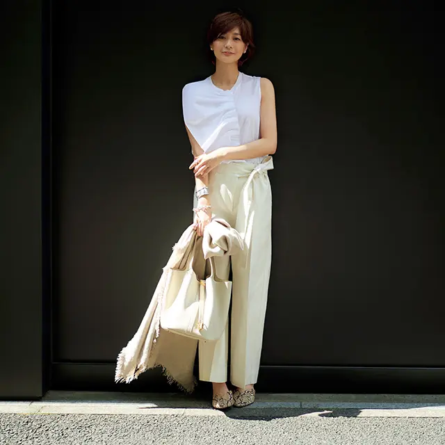 撮影/渡辺謙太郎(MOUSTACHE) ヘア&メイク/野田智子 スタイリング協力/村山佳世子 モデル・コーディネート/富岡佳子 取材・文/磯部安伽 ※eclat8月号掲載