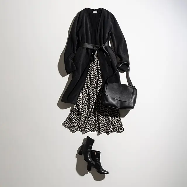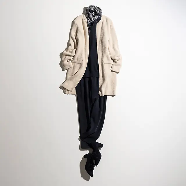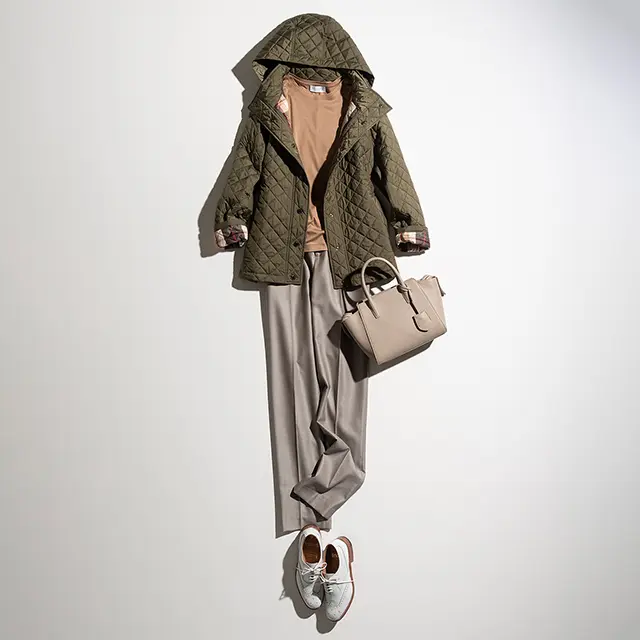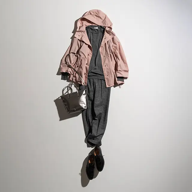 éclatラグジュアリー まだ残暑は残るけれど、気分はもう秋。そんな今こそ頼れるのが、季節をつなぐブリッジアウター。実は、レイヤードして冬まで活躍する“お得な”アイテムでもあります。スタイリスト・村山佳世子さんが、そんな賞味期限の長いブリッジアウターを厳選。まずは初秋にぴったりのコーディネートを提案してくれました。 シャツにさらりと重ねるだけで秋のムードが漂うのがいい 朝晩に肌寒さを感じる頃にぴったりなのが、ウェアラブルジレ。柔らかいニット素材はシャツに重ねて、きりりと着るのが秋の初めに似合います。ベージュ、白、カーキとワントーン系でまとめると、この時期にちょうどいい軽やかさに。冬にはニットの上に、さらにはコートの上に重ねることもでき、これ一つで着こなしにバリエーションがつきます。(村山さん)袖を通せばジレ、通さずにストールと2倍使えるウェアラブルジレ。濃淡ベージュのバイカラーは見せる部分で印象が変わるのもいい。ウェアラブルジレ¥39,000・シャツ¥26,000・パンツ¥26,000・バッグ¥49,000・靴(参考商品)/SANYO SHOKAI (マッキントッシュ ロンドン) 季節の変わり目に重宝な撥水アウターでアスレジャーな装いを 秋もスポーツマインドは引き続き人気です。シャカっとした、艶やかで軽い素材のブルゾンは、ブリッジアウターとしての実用性もありつつ、トレンド感もあるので重宝。この素材ならピンクも甘くならず、逆にスポーツカジュアルにならないのでおすすめです。大人がスマートに着るためにはきちんと感をプラスすること。きれいめパンツで上品に。(村山さん) 撥水加工を施したブルゾンは小さく畳めるパッカブル仕様なのに、サテンのように艶やか。冬にはインナーダウンと重ねても。ブルゾン¥53,000・ニット¥39,000・パンツ¥29,000・バッグ¥39,000・靴(参考商品)/SANYO SHOKAI (マッキントッシュ ロンドン) カーディガン以上のきちんと感。ニットジャケットはフェミニンな白を 白は、爽やかにトーンアップしてくれ、しかもフェミニンに見せてくれる色。ちょっと長め丈もすっきりと軽やかなイメージになります。ネイビーも白との組み合わせで、ぐっと女らしい雰囲気に。ニットジャケットは室内でも着られ、冬にはコートと重ね着もできるのが頼もしい。そういうものこそ、明るい色を選ぶと、着こなしが華やぎます。(村山さん)ネックラインとポケットにトリミングを効かせたシンプルな仕立て。前はファスナー開きで、はおってもスムーズ。ニットジャケット¥59,000・ニット¥24,000・パンツ¥26,000・スカーフ¥15,000/SANYO SHOKAI (マッキントッシュ ロンドン)靴/スタイリスト私物 フリースなのにエレガント。使い勝手のいい軽やかコート フリースと言えばカジュアル素材の代表。でも、グログランリボンのトリミングとサッシュベルトで、ぐっと女らしいアウターにシフトアップ。ラフさと上品さのバランスが、とにかく絶妙です。モコモコとした素材にはとろみのあるスカートを合わせて異素材コーディネートを。ちょっと上位置にベルトを締めると旬のモードな装いが完成します。(村山さん) フリースの1枚仕立ては軽くて着心地もラク。冬にはベルトを外してさらりと着れば、インナーコートにも。コート(フェイクレザーベルト付き)¥43,000・ニット¥25,000・スカート¥33,000・バッグ¥50,000/SANYO SHOKAI (マッキントッシュ ロンドン)靴/スタイリスト私物 きれいめの薄軽キルティングコートはオンにもオフにも! キルティングだけれど、ほんのりAラインシルエットとシックなカーキで上品な印象。オンにもオフにも活躍して、しかもパンツにもスカートにも合う、ヘビロテ確実なアウターです。きれいめだから、センタープレスのパンツとも好相性。カジュアルを意識せず、ベーシックな色使いにすると、品のよさが際立ちます。袖から見えるチェック柄も可愛い。(村山さん) フードは取り外し可能で、外すとスタイリッシュなスタンドカラーに。インナーを調整すれば冬まで暖か。コート¥59,000・Tシャツ¥9,000・パンツ¥36,000・バッグ¥53,000・靴(参考商品)/SANYO SHOKAI (マッキントッシュ ロンドン) 問い合わせ/SANYO SHOKAI(カスタマーサポート) ■0120-340-460 撮影/佐藤彩 スタイリスト/村山佳世子 取材・原文/宮崎桃代 follow us #コート #村山佳世子