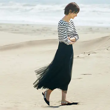 スタイリストの森慶子さんが「私自身が長く愛用してきたアイテム」という視点で、これからも、流行に関係なく、使い続けたいものをセレクト。どれも決して特別なものではなく、空気のような存在の定番を中心にしたラインナップです。雨宮塔子さんが着こなしました。