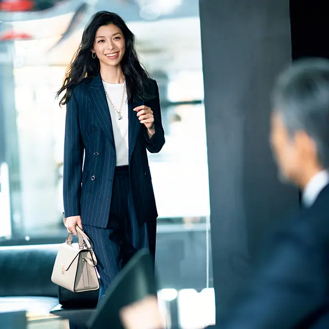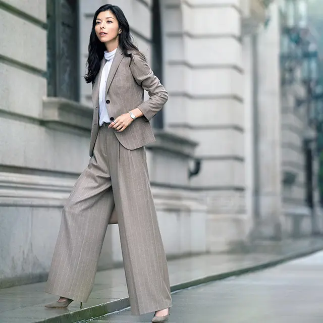 アクティブでいてエレガント。パンツスーツはエグゼクティブキャリア女性の必須アイテム。女性らしさも、しゃれ見えも、品のよさも叶える、一生ものの「美麗パンツスーツ」を、スーツに定評のある5つのブランドから厳選!