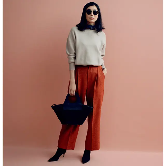 「クールベージュ」と「暖ブラウン」の2色がこの秋冬、最も新鮮な基本色に躍り出た! 合わせるアイテムの上下の色みがどちらもクール系では地味、ウォーム系だけでは派手すぎる。“色がもつ温度感”を考えてそこに落差をつけたコーディネートなら素敵に決まる!