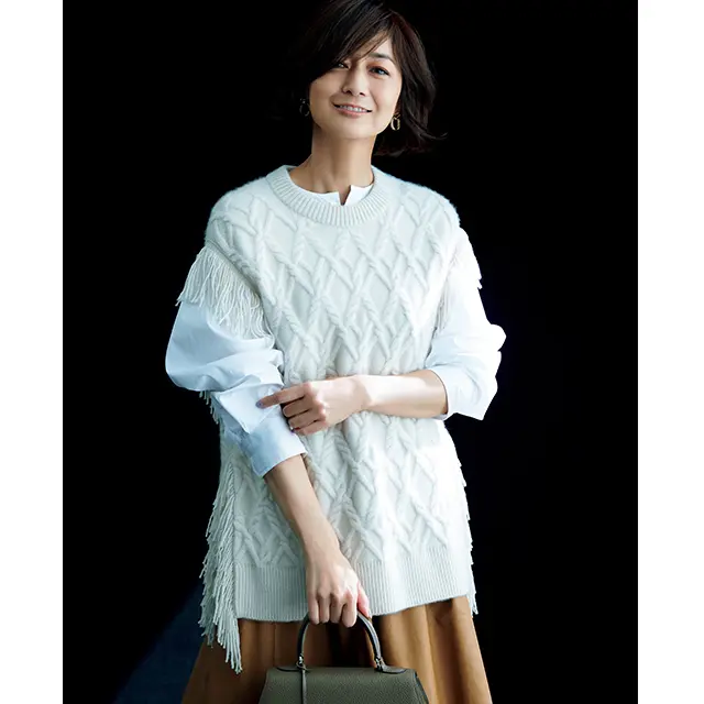 撮影/酒井貴生(aosora) ヘア&メイク/野田智子 スタイリスト/村山佳世子 モデル/富岡佳子 取材・原文/松井陽子 撮影協力/バックグラウンズファクトリー ※eclat12月号掲載 ※掲載商品の価格は、本体価格(税抜)で表示しております。
