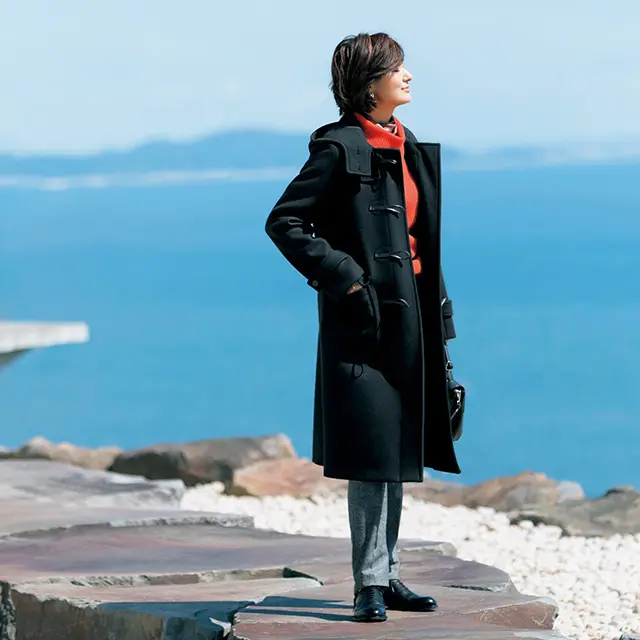 撮影/三宮幹史(TRIVAL) ヘア/Eiji Sato(SIGNO) メイク/小森由貴 スタイリスト/池田メグミ モデル/富岡佳子 取材・原文/向井真樹 撮影協力/小田原文化財団 江之浦測候所 ※エクラ2019年12月号掲載