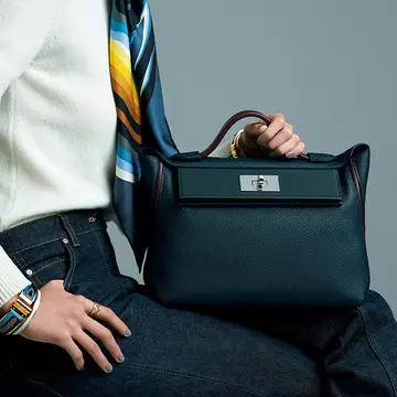 アイコンバッグの最新作「シシリー62」は仕事に必要なきちんと感と、エグゼクティブらしいリッチさが絶妙にミックスされたエレガントなたたずまい。バッグの両サイドにコンパートメントが分かれており、フラップを出し入れすることで、写真のようにバッグの印象まで変えられる(上のバッグは写真の面が裏面)。