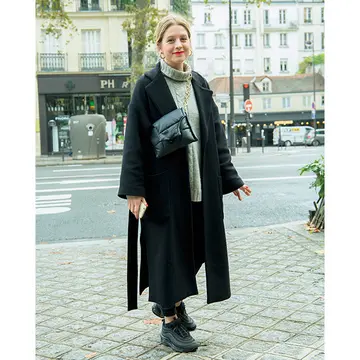 ユルッとカービーなシルエットがわかりやすいデニムもザラ。テーパードしたすそをロールアップすると、ちょいユルいシルエットのおさまりがいい。コートは多数のマダムが愛用の&Other Stories。ノーカラーがこなれた味わい。