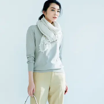 パンツ¥28,000/ロンハーマン シャツ¥39,000/マディソンブルー 肩にかけたニット¥29,000/スローン ネックレス¥360,000/TASAKI バッグ¥66,000/ドレステリア 新宿店(エバゴス) 靴¥79,000/ジャンヴィト ロッシ ジャパン(ジャンヴィト ロッシ)