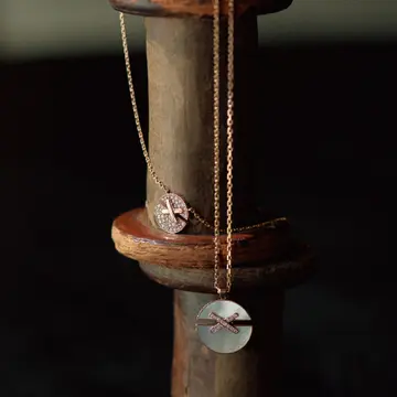 エクスリブリス(蔵書印)のモチーフを、コンテンポラリーに新解釈したコレクション。印象的な小ぶりのメダイユは、何百年も前に発明された技術でスタンピングされたモチーフを手作業で研磨したもの。メダイユから伸びた華奢なチェーンが軽やかで、大ぶりのフープとのコントラストが見事。フープの中にはひと粒のダイヤモンドが。