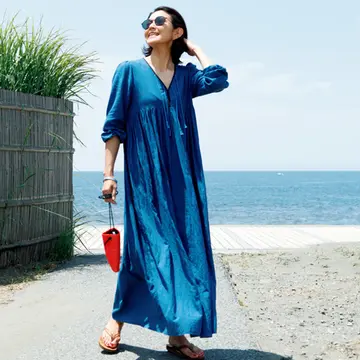 「家からそのまま海まで。気兼ねなくサラッと着るマキシ丈は夏の定番」