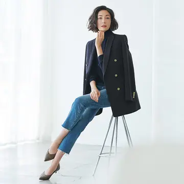 コート¥89,000・パンツ¥39,000/ebure GINZA SIX店(ebure) ニット¥60,000/ボウルズ(ハイク) ピアス¥24,000・リング¥12,000/UTS PR(ルフェール)