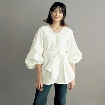 ブラウス¥185,900/アクリス ジャパン(アクリス) パンツ¥40,700/ストラスブルゴ イヤリング¥165,000/エスジェイ ジュエリー(カプリシャス) バッグ¥209,000/ジョルジオ アルマーニ ジャパン(ジョルジオ アルマーニ) 靴¥104,500/セルジオ ロッシ カスタマーサービス(セルジオ ロッシ)