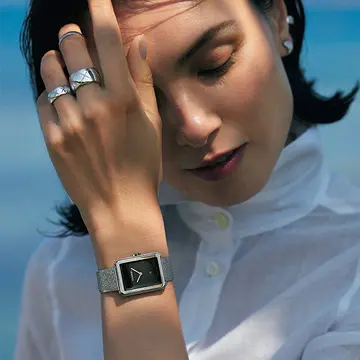 撮影/生田昌士(hannah) ヘア/西村浩一(VOW-VOW) メイク/KIE KIYOHARA(beauty direction) スタイリスト/伊藤美佐季 モデル/田沢美亜 取材・原文/大野智子 ※特集中以下の略号を使用します。SS=ステンレススチール、WG=ホワイトゴールド、PG=ピンクゴールド、SV=シルバー、D=ダイヤモンド ※エクラ2021年8月号掲載
