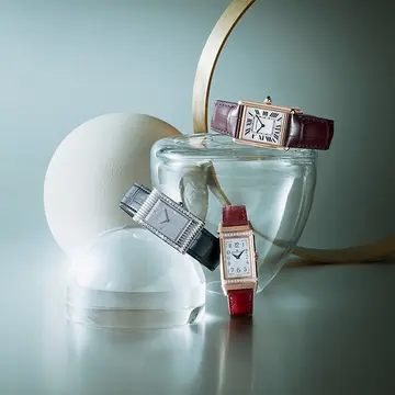 バングル感覚でラフに楽しめる、ステンレススチール時計。ピンクのダイヤルが甘い印象与える「カルティエ」のラウンドウォッチで夏のおしゃれを楽しんで。