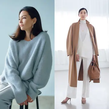 コート¥178,200(エス マックスマーラ)・ニット¥61,600・バッグ¥86,900(ともにマックスマーラ)・パンツ¥49,500(スポーツマックス)/以上マックスマーラ ジャパン サングラス¥39,600/アイヴァン 東京ギャラリー(アイヴァン) ネックレス¥52,800/エイチ ビューティ&ユース(プリーク) 靴¥100,100/セルジオ ロッシ カスタマーサービス(セルジオ ロッシ)