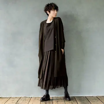 コート¥24,000/ノーク カーディガン¥30,800・スカート¥27,500/カオス丸の内(カオス) カットソー¥8,580/スローン バッグ¥124,300/トッズ・ジャパン(トッズ)靴¥45,100/ファビオ ルスコーニ ルミネ有楽町店(ファビオ ルスコーニ)