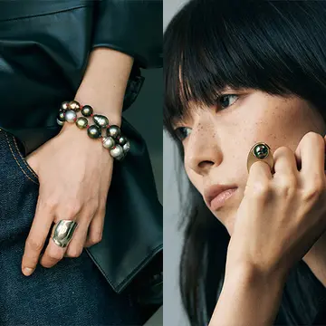 清潔感ある女性らしい装いに合う「大人のジュエリー」は、重ねるほどにマチュアな魅力を発揮する。この冬は「重ねづけジュエリー」を装いの主役に。