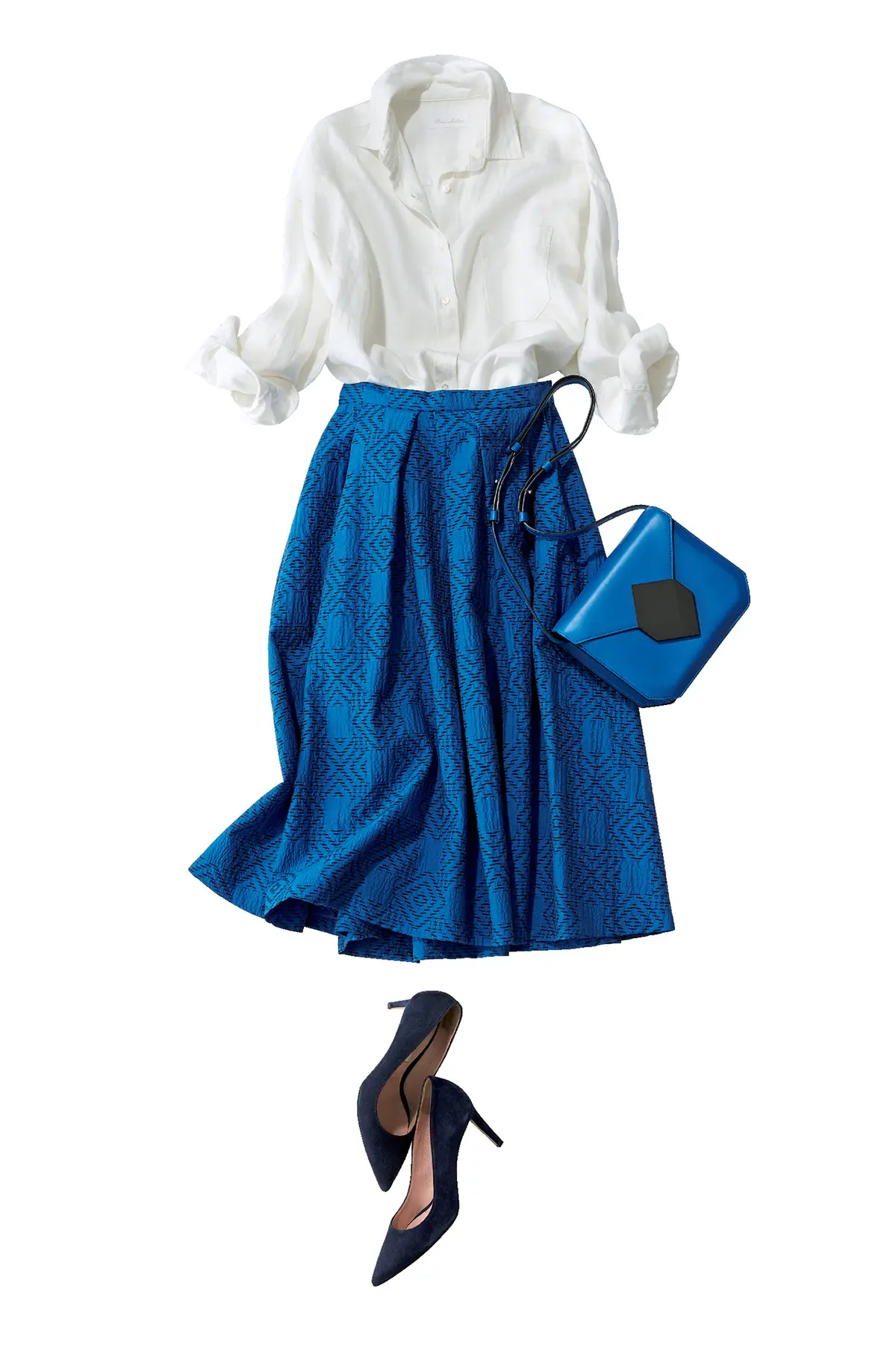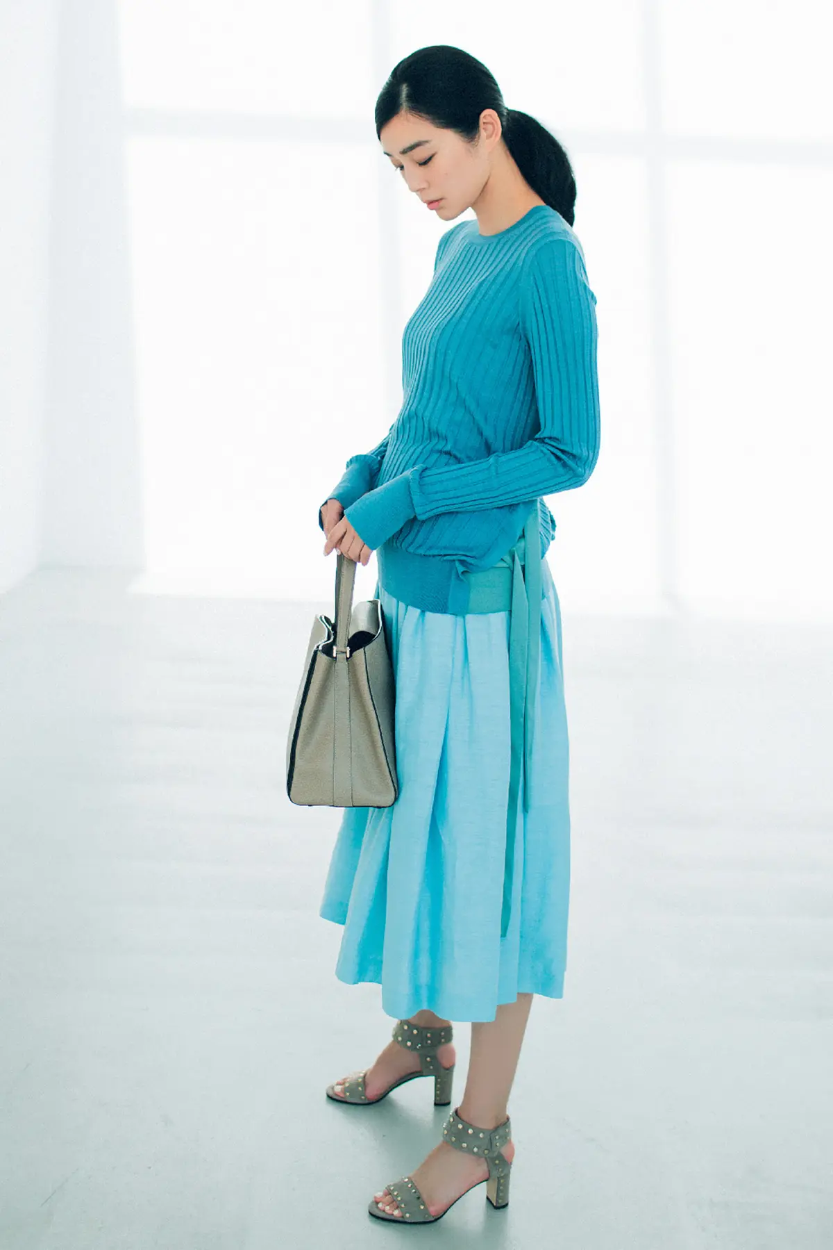 一枚投入するだけで、着こなしが一気に今年らしく、美人度がアップして見違える。そんな「美人色」の中でも一番挑戦しやすいブルー。素材やシルエットで変化をつければもっと印象的におしゃれが決まる。小物まで色のトーンをそろえればさらに素敵!