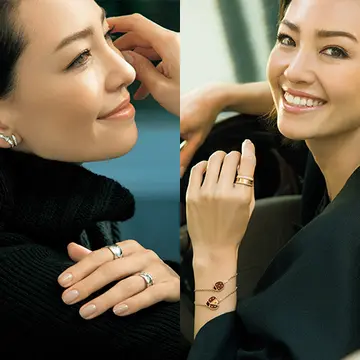 花のモチーフは年齢や世代を超えて女性の心を惹きつける幸福感の象徴。「ダミアーニ」のマルゲリータ コレクションは、重ねづけすることで、アラフィー世代にふさわしい優雅なラグジュアリー感を演出。