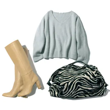 モノトーンの装いにリズムを生むゼブラ柄のビッグトート