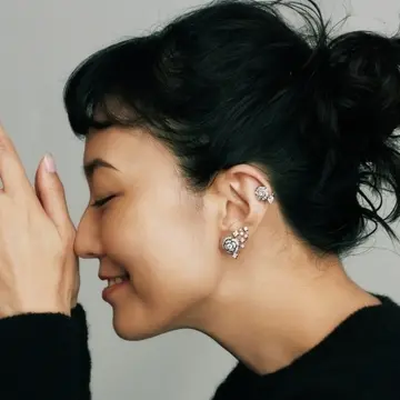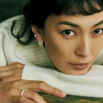 ブランド創業の地、NYを象徴する建築要素のフェンスという意外なインスピレーションソースから生まれた新作コレクション。すべてのピースに共通するのは、街と人、人と人の絆を表現するグラフィカルな「ノット(結び目)」モチーフだ。その主役ともいえる呼べる2連のネックレスは、300石以上のダイヤモンドが手作業でセットされ、モダンで華やかな輝きが魅力。軽やかなピアスは長くたれるタイプと短めの2タイプで、板谷さんの2つのピアス穴に似合う素敵なバランス。