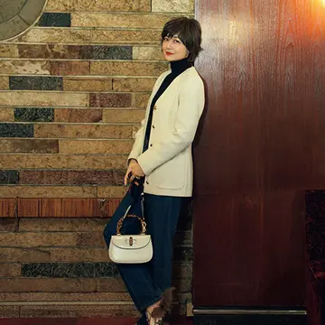デニム¥25,300/カイタックインターナショナル(ヤヌーク) ジャケット¥198,000/マディソンブルー Tシャツ¥9,350/スローン イヤカフ¥23,100/マリハ バッグ¥204,600/ジミー チュウ 靴¥121,000/ジェイエムウエストン 青山店(ジェイエムウエストン)