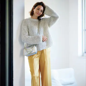 ニット¥96,800/ドゥロワー 六本木店(ドゥロワー) キャミソール¥8,800/ebure GINZA SIX店(ebure) パンツ¥37,400/ミューズ ドゥ ドゥーズィエム クラス 六本木店(ドゥーズィエム クラス) ピアス¥25,850/room3138(ローラ ロンバルディ) ネックレス¥158,400/エスケーパーズオンライン(ソフィー ブハイ) ブレスレット¥26,400/ザ ストア バイシー 代官山店(ローラ ロンバルディ) バッグ¥204,600/ジミー チュウ 靴¥58,300/スティーブン アラン シンジュク(へリュー)