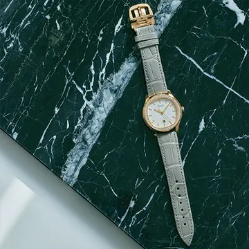 バック・トゥー・ベーシックという気持ちで、この歳になってロレックスの時計に純粋に惹かれるようになったという大草さん。「自分でようやく時計を買えるようになった30代には、時計がステイタスシンボルとして浮いてしまいそうで選べませんでした。ステイタスには今でもあまり興味がないのですが、揺らぐことのないこの存在感に、ゆったりとした居心地のよさを感じます。たとえるならロゼシャンパン。そんな甘さのある独特のエバーローズゴールドに、ベゼルのきらめくダイヤモンド。眩いまでの華やかさも、手首に載せると意外にもトゥーマッチにはなりません」。赤みのあるゴールドはイエローゴールドやシルバーをつないでくれるハブのような存在。この時計も、ふだんの手もとのジュエリーコーディネートをとりまとめてくれるはず。「特別なときにと思いがちですが、逆に家にいるときにこそ。憧れます!」。